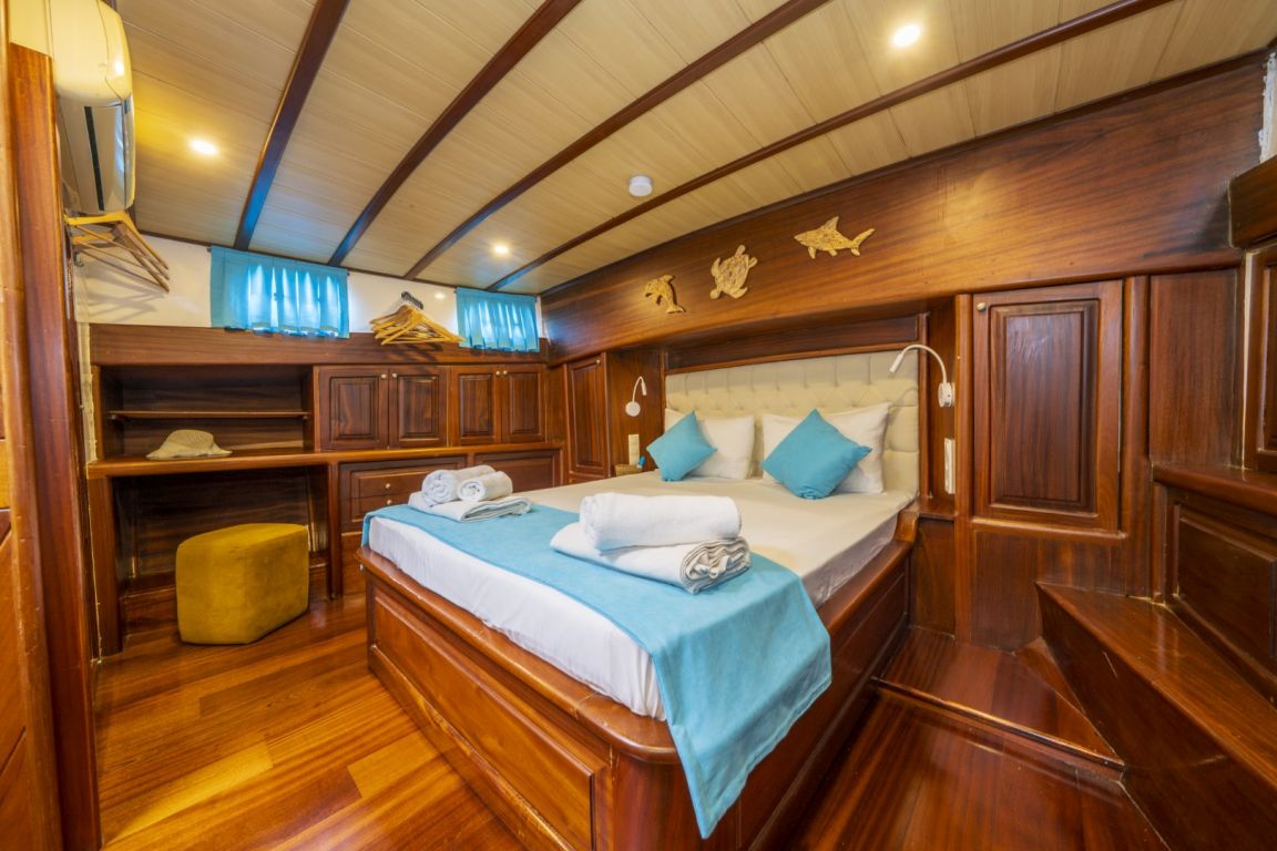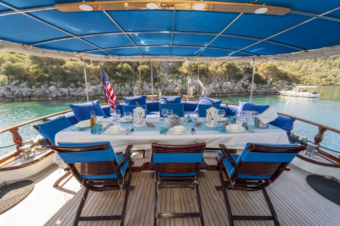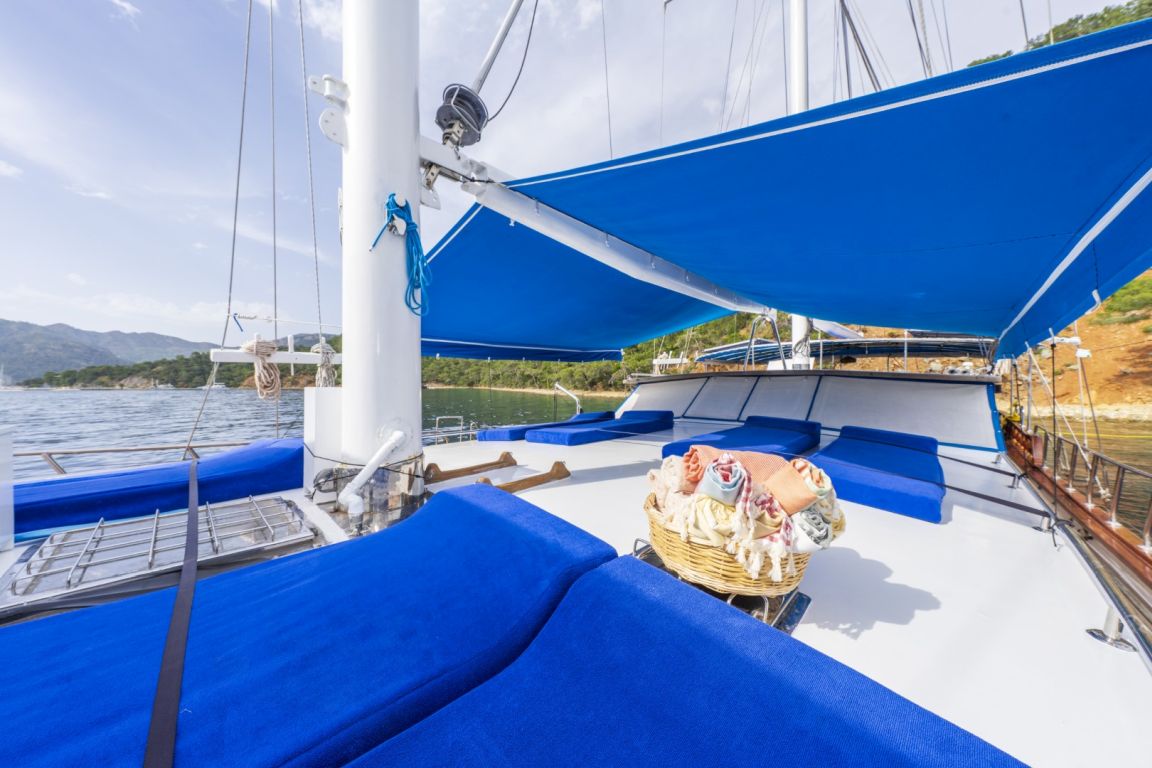 Con salida desde Fethiye, Elena es perfecta para descubrir las impresionantes bahías de Göcek y la costa circundante. Combinando confort, sencillez y el encanto tradicional del gulet, Elena es la elección ideal para quienes buscan una experiencia de luxury gulet charter en Turquía relajante, íntima e inolvidable.