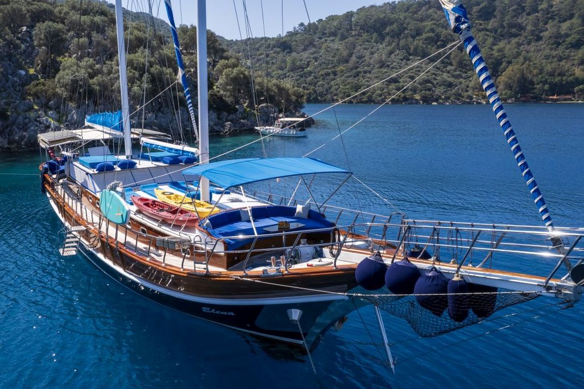 Elena es un elegante gulet de 23 metros, diseñado para ofrecer una experiencia cómoda y relajante de alquiler de gulet privado a lo largo de la hermosa costa turca. Construido originalmente en 2006 y completamente renovado en 2023, este yate combina el encanto clásico del gulet con el confort moderno. Con 3 cabinas (1 Master y 2 Double) con capacidad para hasta 6 huéspedes, Elena es una opción ideal para familias y pequeños grupos que buscan unas vacaciones tranquilas e íntimas de Blue Cruise en Turquía.