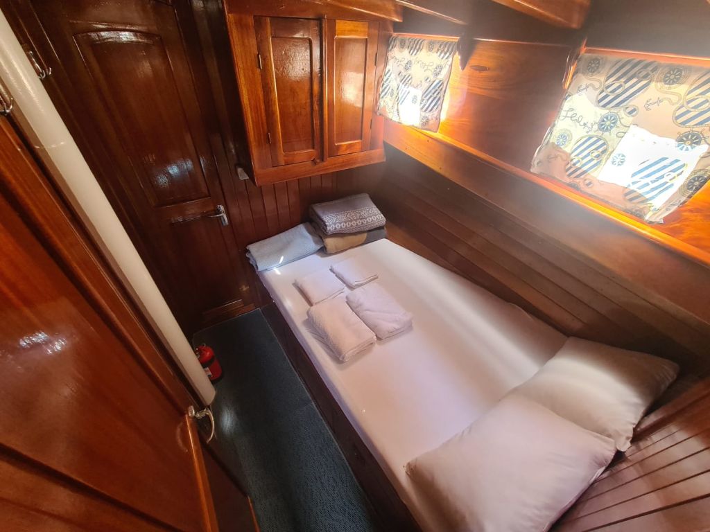 Erturk Goleta ofrece alojamiento para un total de 6 huéspedes con un total de 3 camarotes dobles. Los camarotes con aire acondicionado de nuestro Goleta tienen cómodas instalaciones de ducha y WC. Los espacios interiores y exteriores, el salón, la cubierta y la cocina de nuestro Erturk Goleta están decorados con buen gusto utilizando materiales de alta calidad.