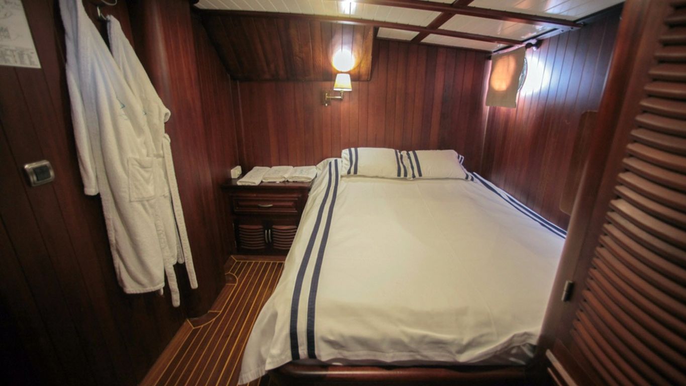 | El Gulet Area es un gulet tradicional de 26,4 metros, construido en 2000 y renovado en 2017. Con cinco camarotes —dos masters, un doble y dos twins— puede alojar hasta 10 huéspedes. Su manga de 6,80 metros ofrece espacios amplios tanto en cubierta como en el interior. La cubierta incluye áreas de sol con cojines, comedores sombreados y un lounge cómodo. En el interior, un salón acogedor con comedor y cocina totalmente equipada complementa la experiencia. Para los deportes acuáticos, Area ofrece un bote auxiliar Yamaha de 100 hp, un kayak, equipo de snorkel y cañas de pescar. El gulet está propulsado por dos motores Man de 360 hp y respaldado por dos generadores de 33 kVa, navegando a 10 nudos. El aire acondicionado está disponible 8 horas al día, con electricidad de 12V/24V/220V. Area es ideal para grupos que valoran la tradición junto con el confort y actividades acuáticas en la costa turca. |