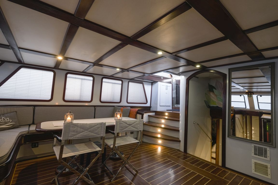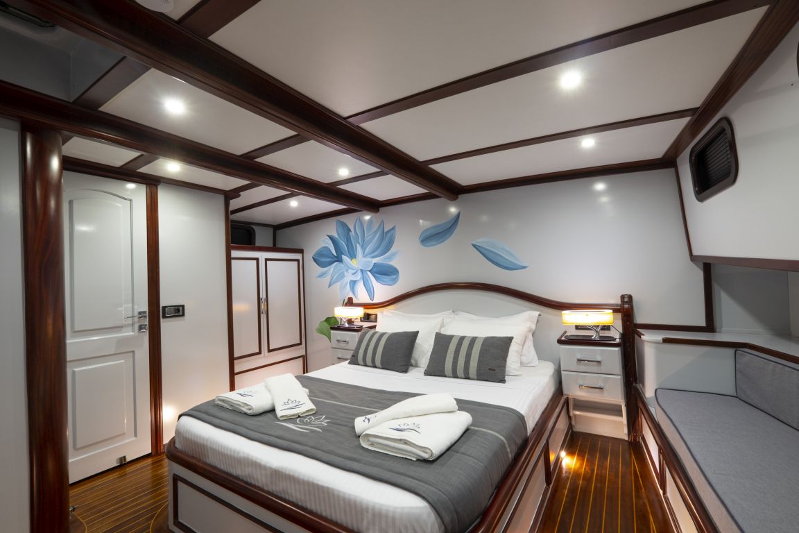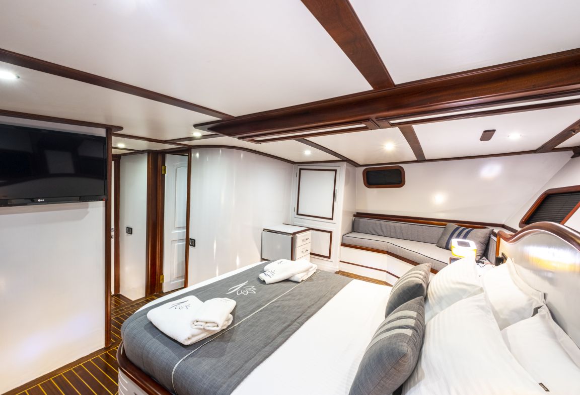 estimados clientes con una tripulación de 4 personas. Nuestro yate cuenta con un total de 5 camarotes: 2 camarotes principales y 3 camarotes dobles, todos elegantes y confortables,
