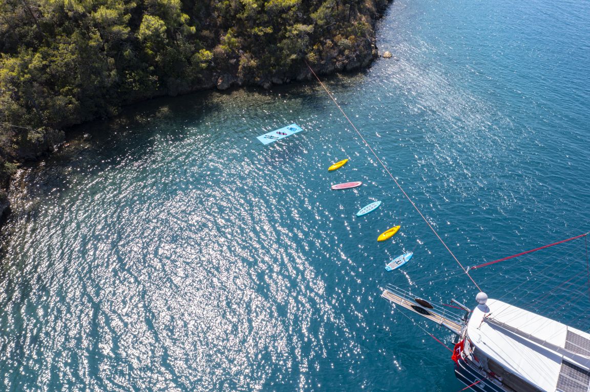 practicar deportes acuáticos como wakeboard, esquí acuático, piragüismo y Hobie Mirage. Para quienes deseen disfrutar del Crucero Azul en las bahías vírgenes de Turquía, nuestro
