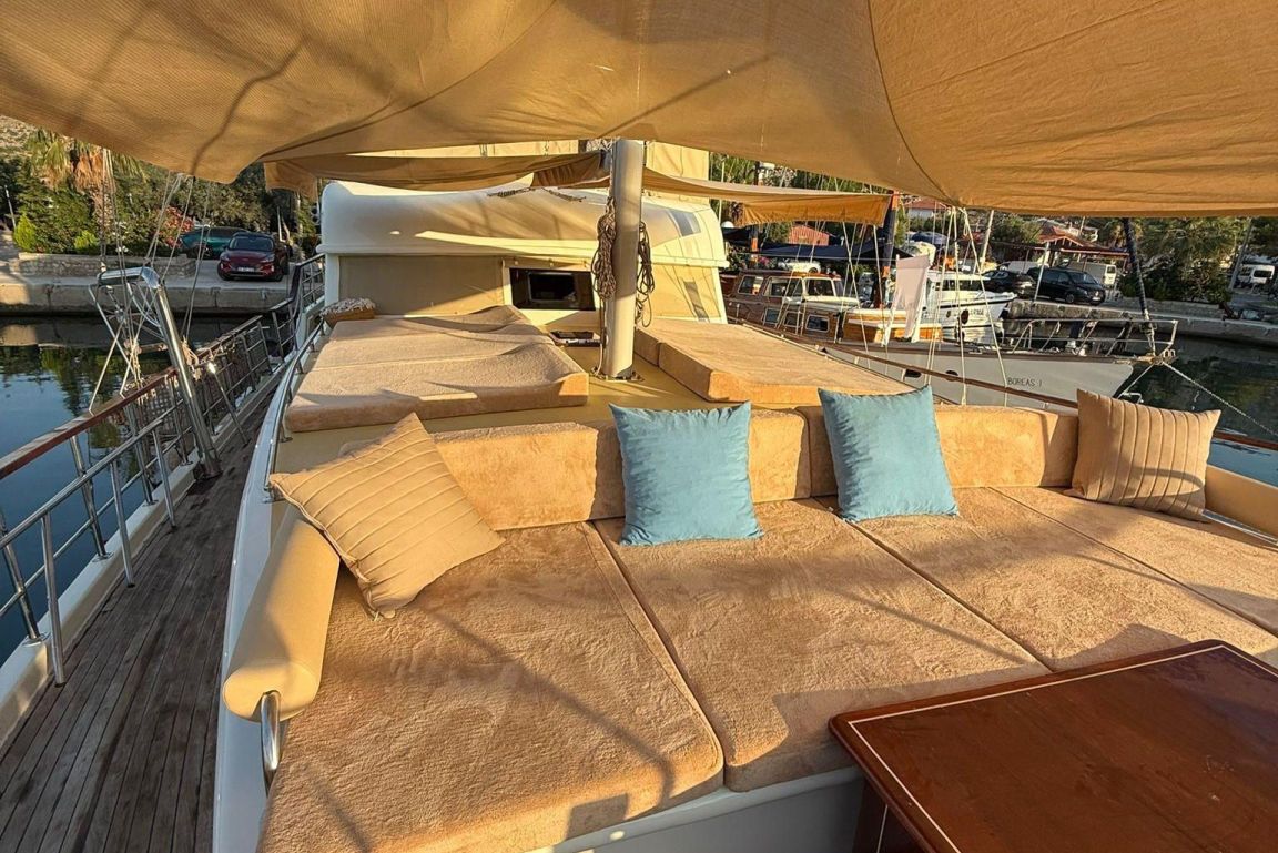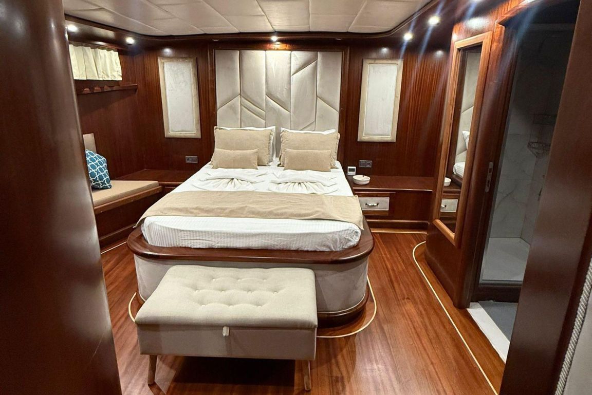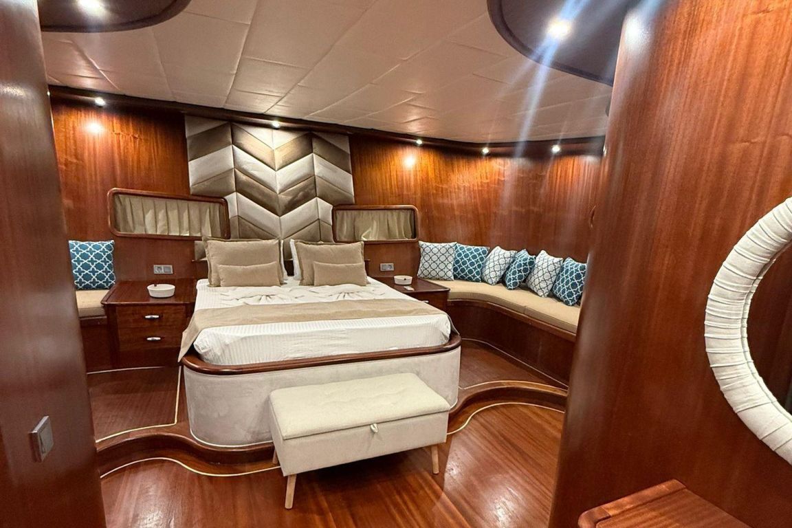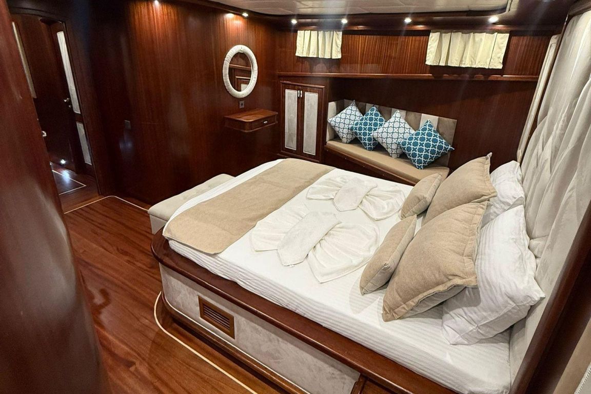 Mare Magico es una goleta de 24 metros diseñada para ofrecer una experiencia excepcional de alquiler privado a lo largo de la costa turca. Con 5 camarotes (2 Master, 1 Doble y 2 Triples) para hasta 12 huéspedes, es una opción ideal para familias y grupos que buscan comodidad, espacio y unas vacaciones Blue Cruise de alta calidad en Turquía. Cada camarote cuenta con aire acondicionado, baño privado y una decoración elegante para garantizar una estancia relajante.