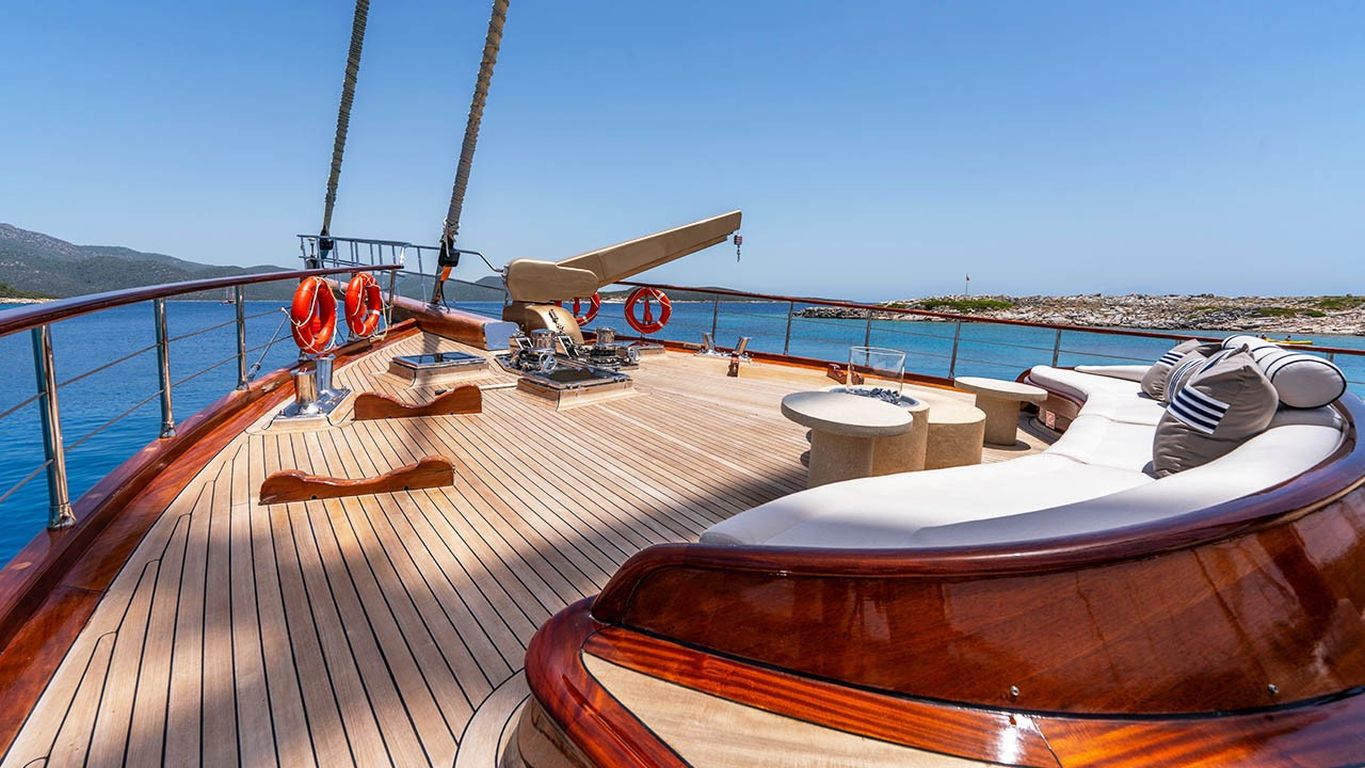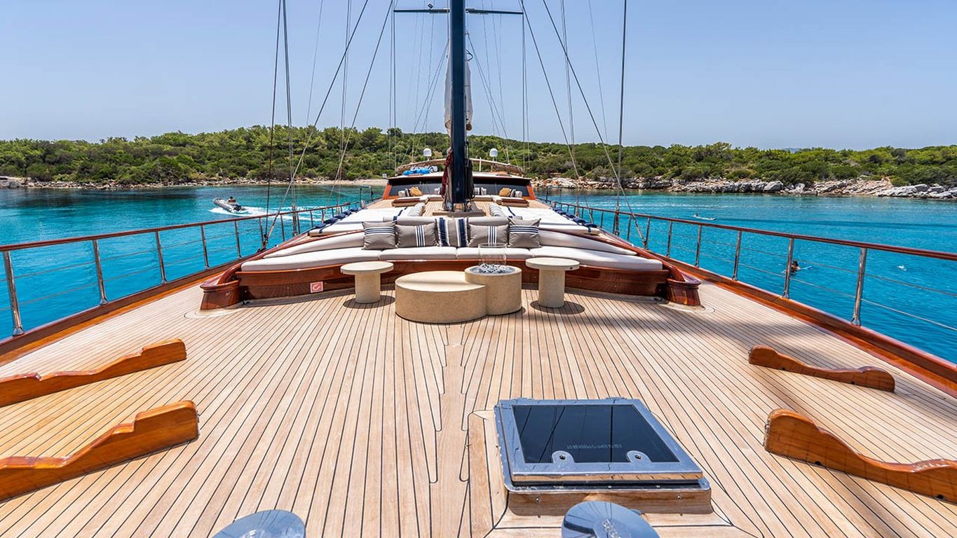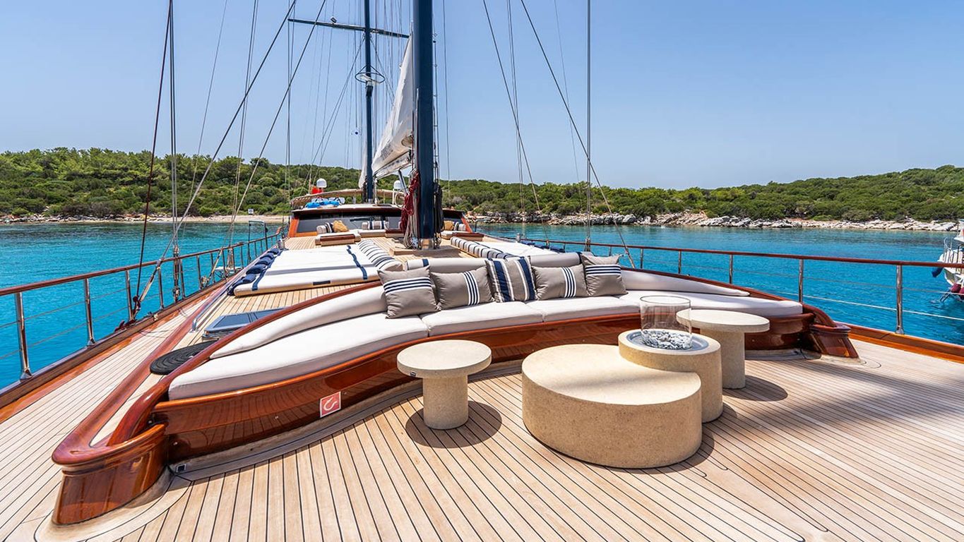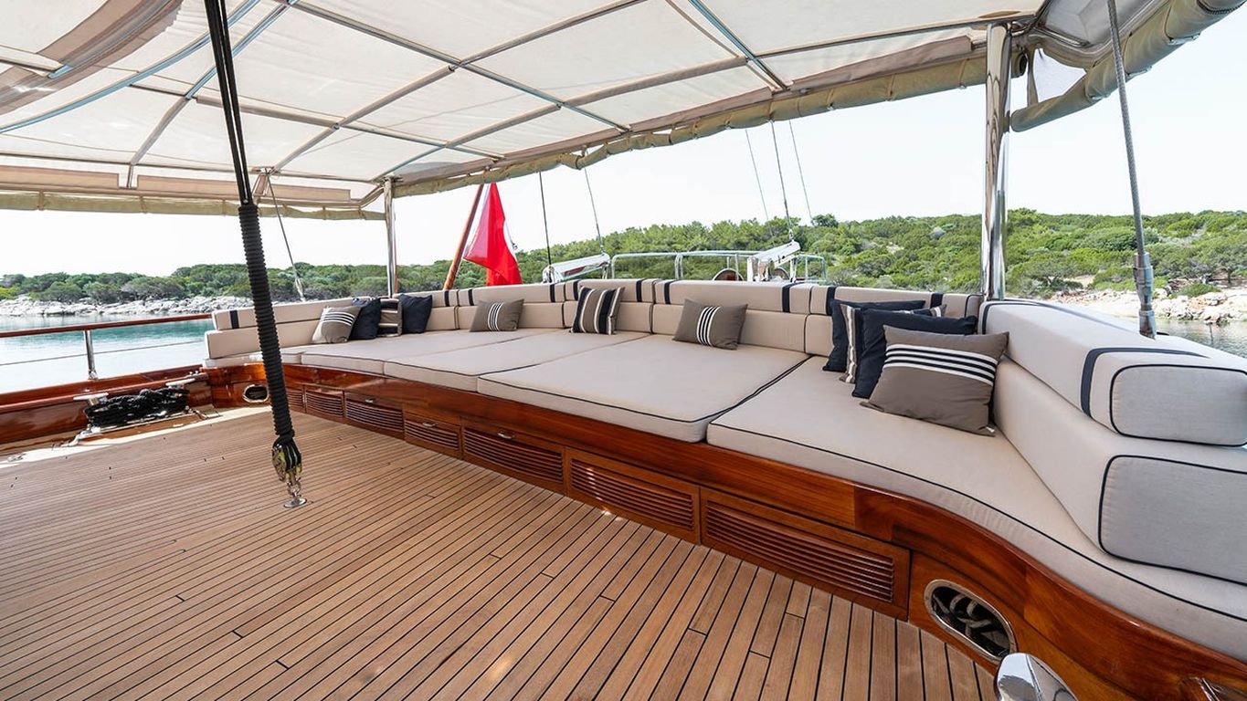 | Il caicco Performance Fee è un’imbarcazione deluxe di 38 metri, varata nel 2011 e completamente ristrutturata nel 2024. Dispone di cinque cabine – due master e tre doppie – con una capacità massima di 10 ospiti. La larghezza di 8,77 metri assicura ampi interni e grandi spazi esterni. Il ponte è progettato per il massimo comfort, con cuscini prendisole, aree lounge all’ombra e un tavolo da pranzo all’aperto. All’interno, il salone moderno dispone di zona pranzo, lounge e decorazioni contemporanee. Per le attività acquatiche, Performance Fee offre tender da 150 hp, paddle board, sci d’acqua, wakeboard, ringo, banana, canoe, attrezzatura da snorkeling e da pesca. È alimentato da due motori Volvo da 550 hp e supportato da due generatori da 40 kVA, con velocità di crociera di 12 nodi. L’aria condizionata è disponibile 24/7. Performance Fee è perfetto per famiglie e gruppi che desiderano unire lusso, comfort e una crociera attiva con numerose attività acquatiche. |