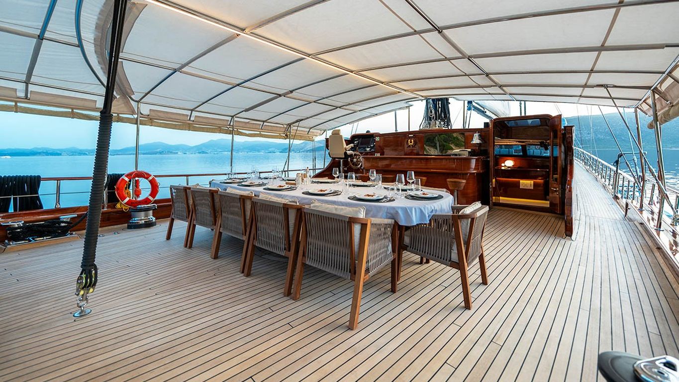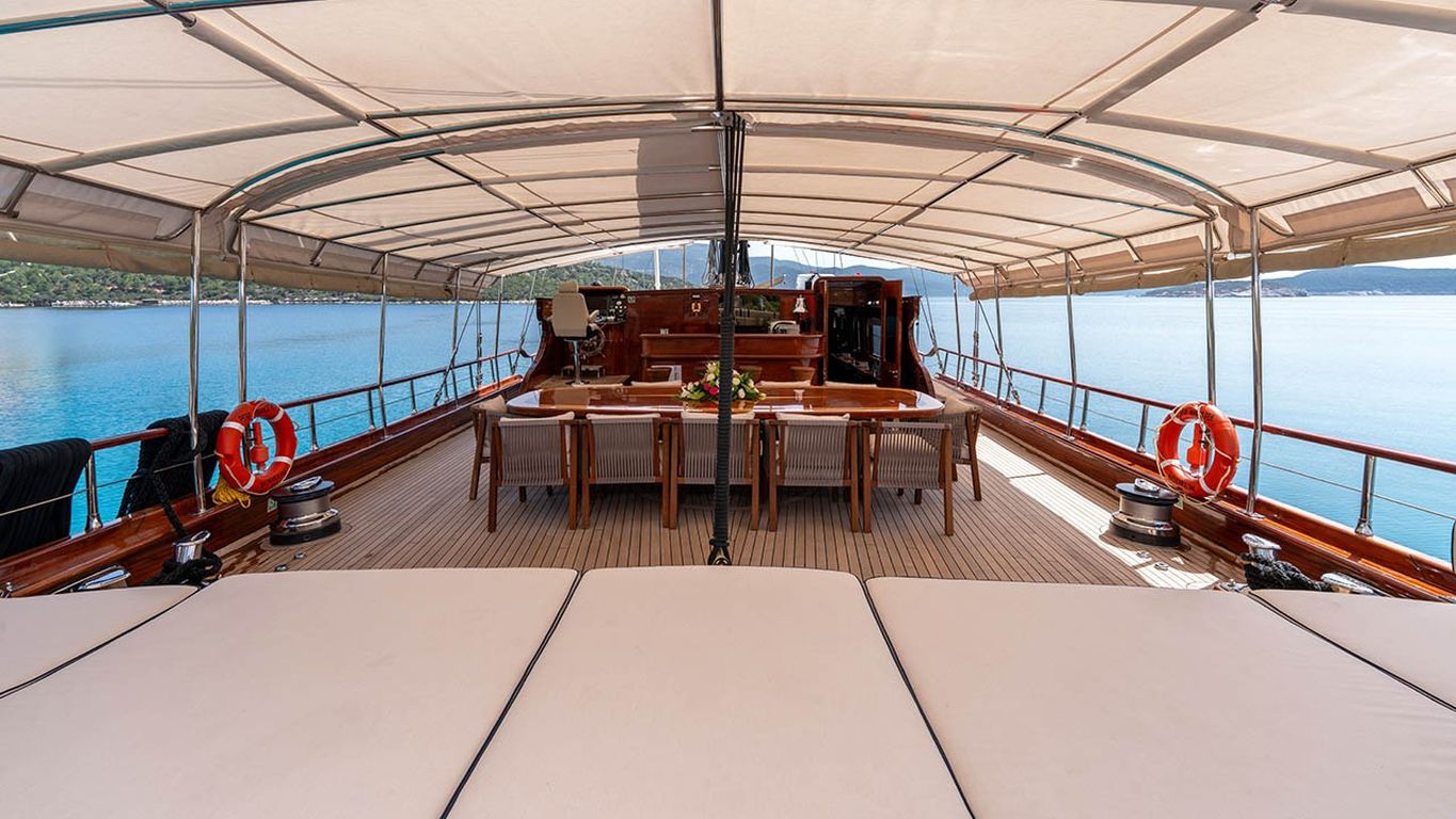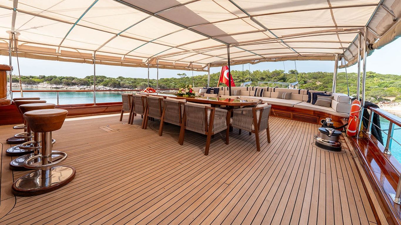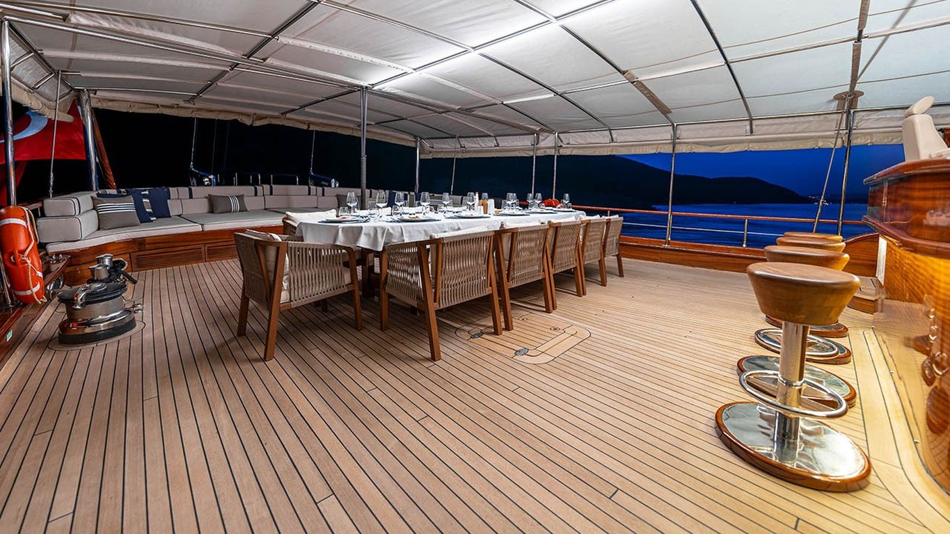 | Il caicco Performance Fee è un’imbarcazione deluxe di 38 metri, varata nel 2011 e completamente ristrutturata nel 2024. Dispone di cinque cabine – due master e tre doppie – con una capacità massima di 10 ospiti. La larghezza di 8,77 metri assicura ampi interni e grandi spazi esterni. Il ponte è progettato per il massimo comfort, con cuscini prendisole, aree lounge all’ombra e un tavolo da pranzo all’aperto. All’interno, il salone moderno dispone di zona pranzo, lounge e decorazioni contemporanee. Per le attività acquatiche, Performance Fee offre tender da 150 hp, paddle board, sci d’acqua, wakeboard, ringo, banana, canoe, attrezzatura da snorkeling e da pesca. È alimentato da due motori Volvo da 550 hp e supportato da due generatori da 40 kVA, con velocità di crociera di 12 nodi. L’aria condizionata è disponibile 24/7. Performance Fee è perfetto per famiglie e gruppi che desiderano unire lusso, comfort e una crociera attiva con numerose attività acquatiche. |