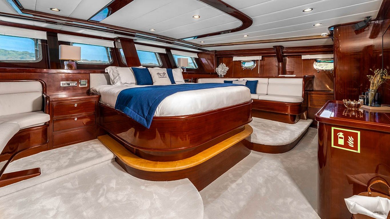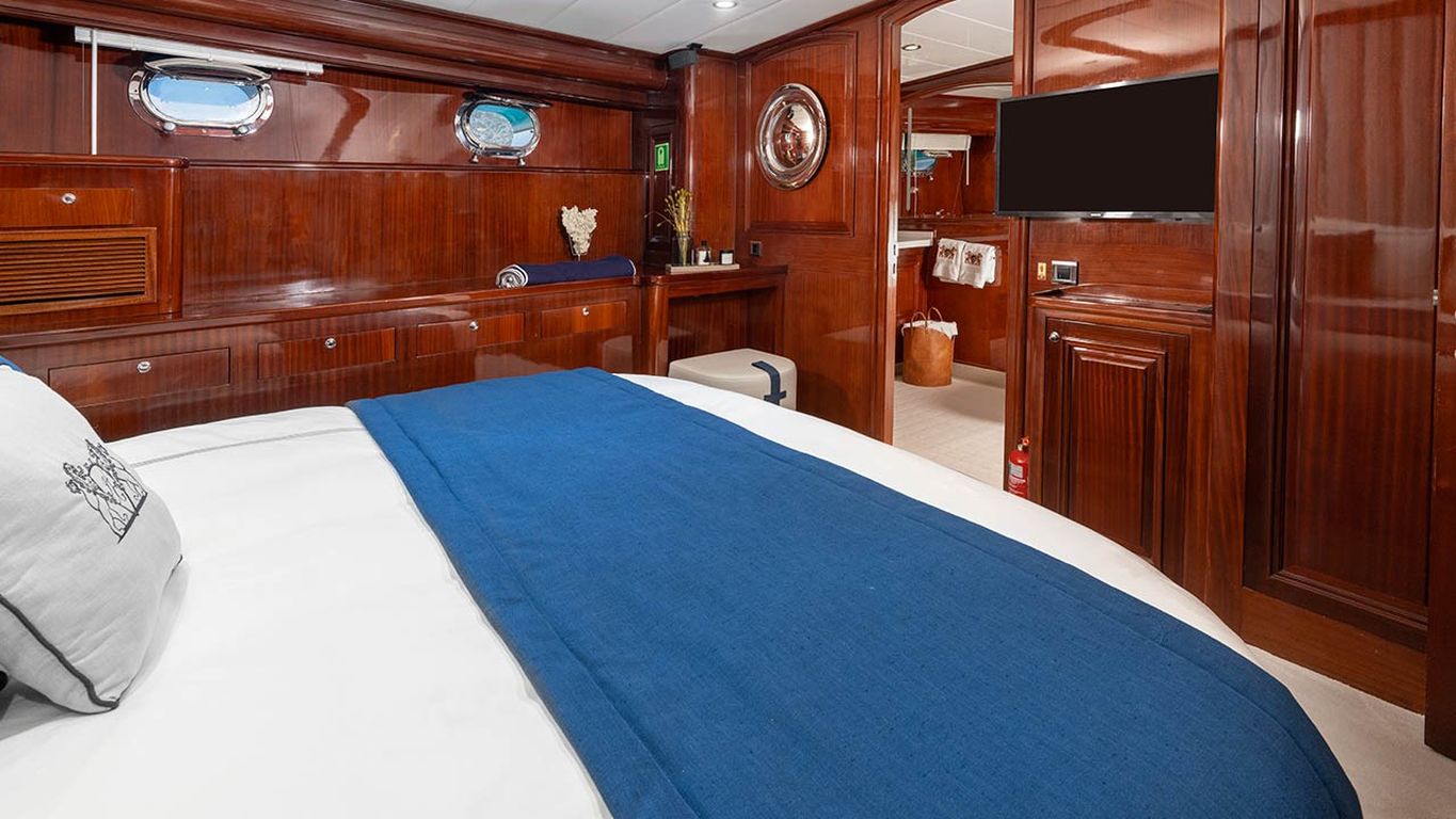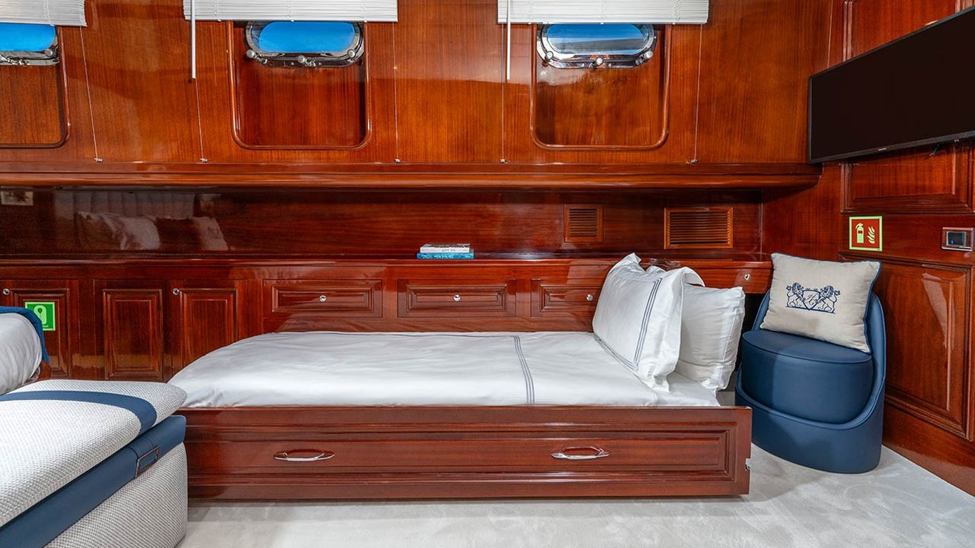 | Capacidad para hasta 12 invitados; 2 cabinas principales, 3 cabinas dobles, cabinas de ducha y baños en todas las cabinas, cabinas de tripulación separadas. |