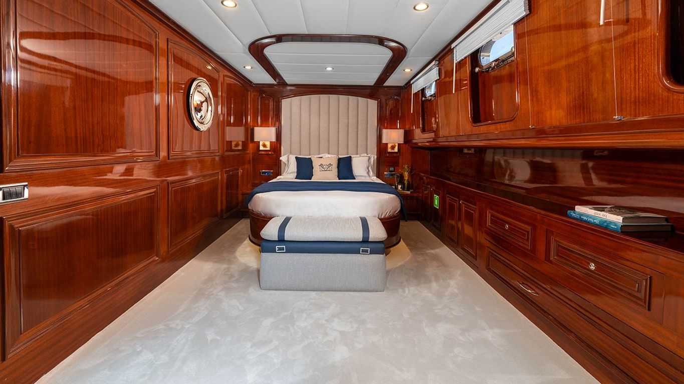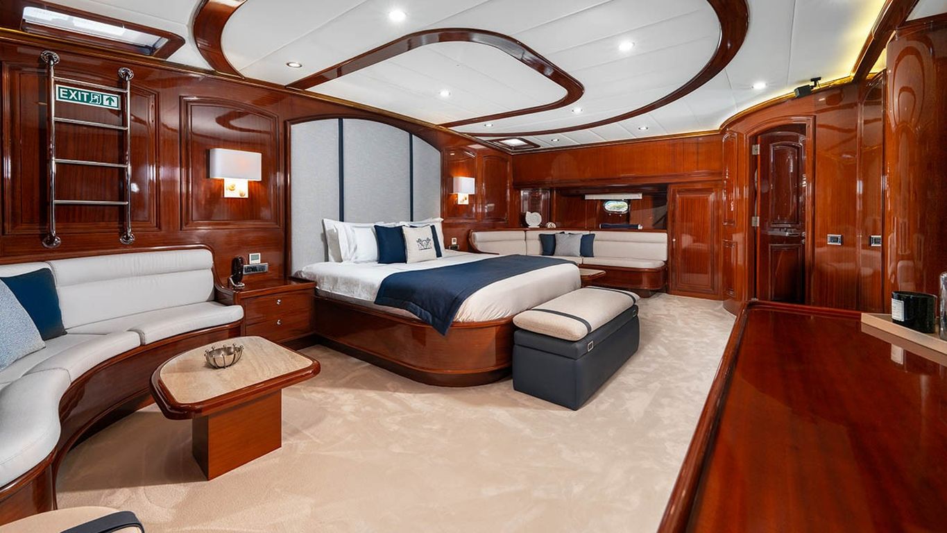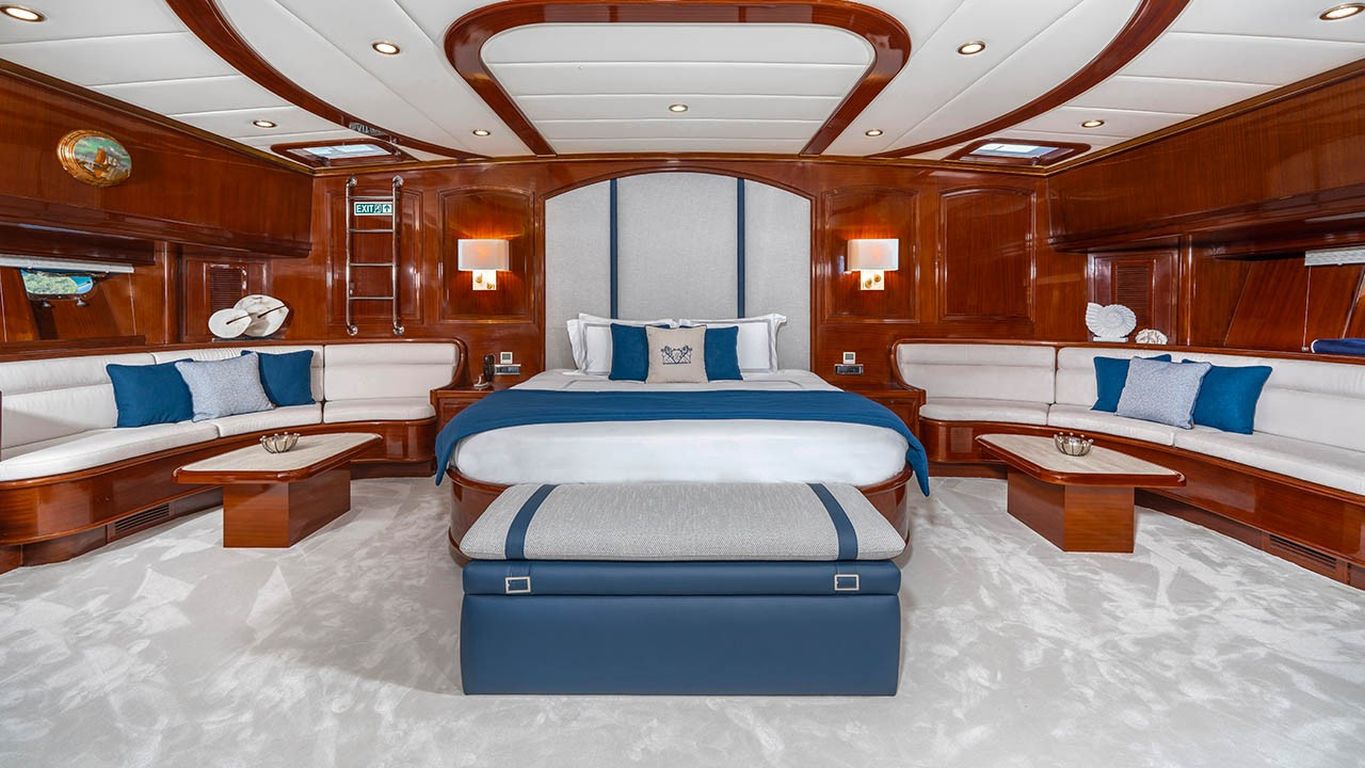 | Capacidad para hasta 12 invitados; 2 cabinas principales, 3 cabinas dobles, cabinas de ducha y baños en todas las cabinas, cabinas de tripulación separadas. |