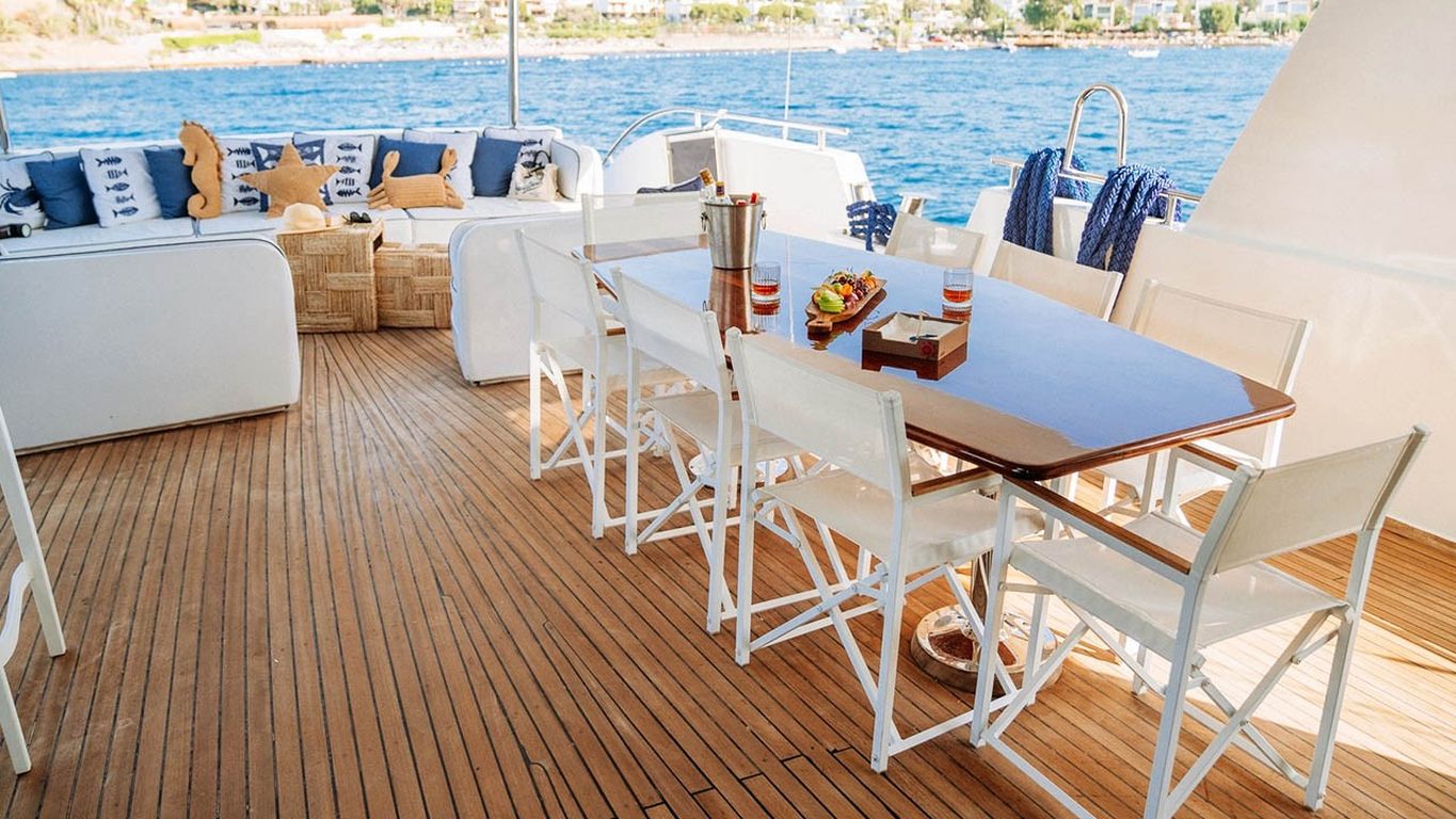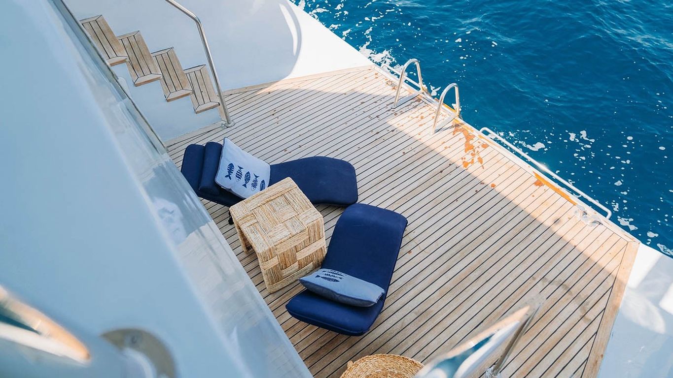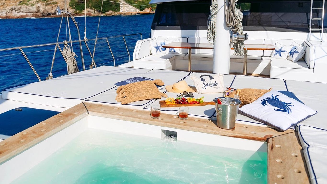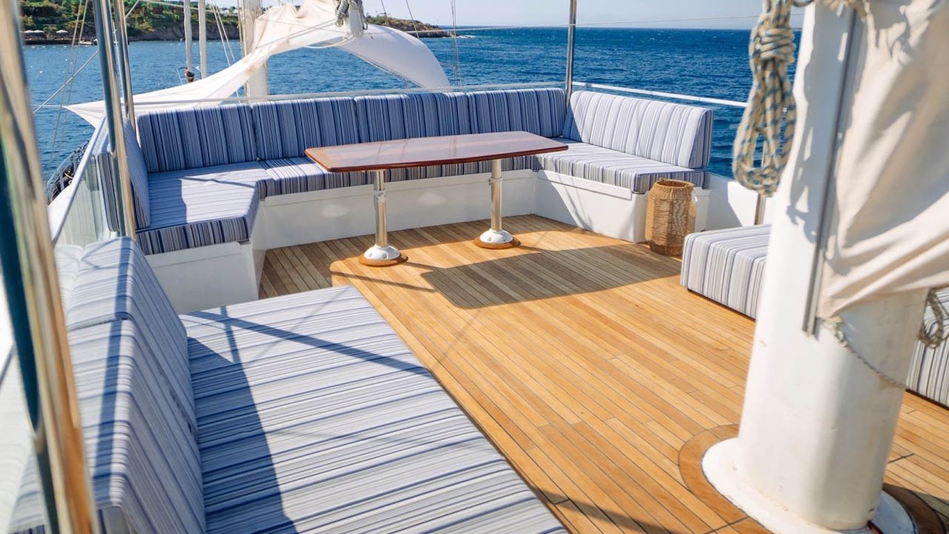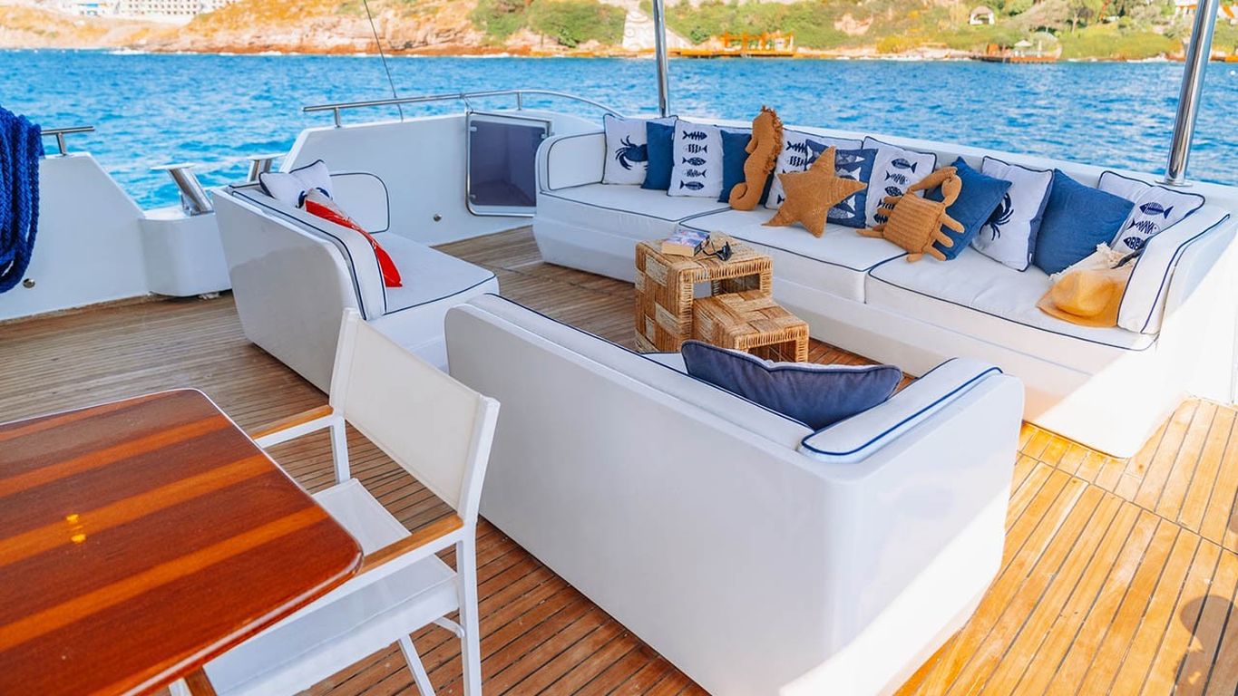 | El Gulet S4 es un gulet de lujo de 35 metros, originalmente construido en 2003 y completamente renovado en 2024. Dispone de cinco camarotes: un master y cuatro dobles, con capacidad máxima de 10 huéspedes. Su manga de 7,10 metros garantiza camarotes espaciosos, interiores bien equipados y cubiertas amplias. Los huéspedes disfrutan de colchones para tomar el sol, zonas de descanso sombreadas y un comedor exterior. El salón elegante incluye comedor, sofás y cocina equipada. S4 está equipado con un bote auxiliar de 60 hp, tabla de paddle surf, esquís acuáticos, ringo, kayak, equipo de snorkel y pesca. Propulsado por dos motores Caterpillar de 450 hp y generadores de 22,5 kVA, alcanza una velocidad de crucero de 9 nudos. El aire acondicionado funciona 24/7, con sistemas de 12V/24V/220V. El Gulet S4 es ideal para grupos que buscan un gulet de lujo recientemente renovado, con amplias comodidades y deportes acuáticos. |