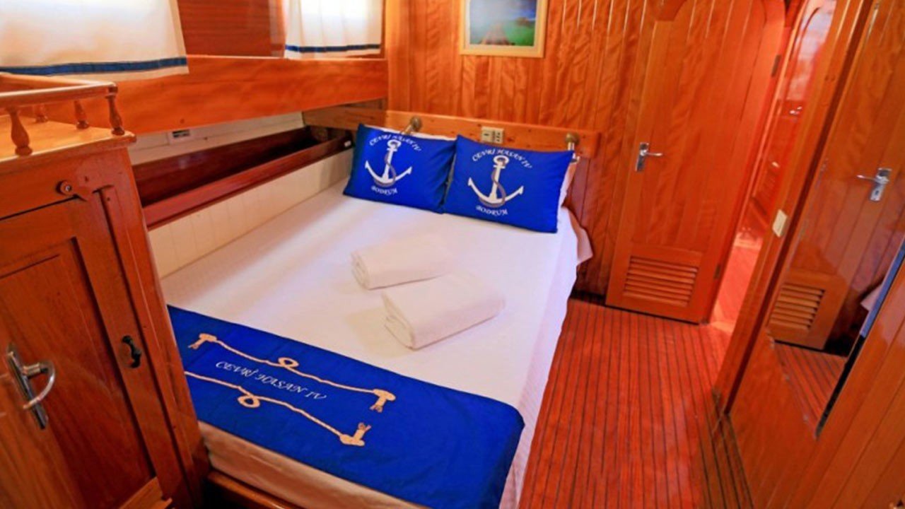 | El Gulet Cevri Hasan 4 es un gulet de 25 metros, construido en 1998 y reacondicionado en 2015. Dispone de seis cabinas, incluyendo dos dobles, dos triples y dos twin, con una capacidad máxima de 12 huéspedes. Todas las cabinas cuentan con baño privado. La cubierta está diseñada para ofrecer áreas de comedor sombreadas, asientos acolchados y amplias zonas para tomar el sol. En el interior, el salón incluye un comedor y una cocina. Para actividades acuáticas, proporciona un tender de 70 HP, una tabla de paddle surf, un ringo, una canoa, equipo de snorkel y equipo de pesca. Cevri Hasan 4 está impulsado por un motor Volvo de 400 HP y generadores de 13 + 11 kVa, con una velocidad de crucero de 12 nudos. El aire acondicionado está disponible durante 12 horas al día, garantizando el confort de los huéspedes durante todo el viaje. |