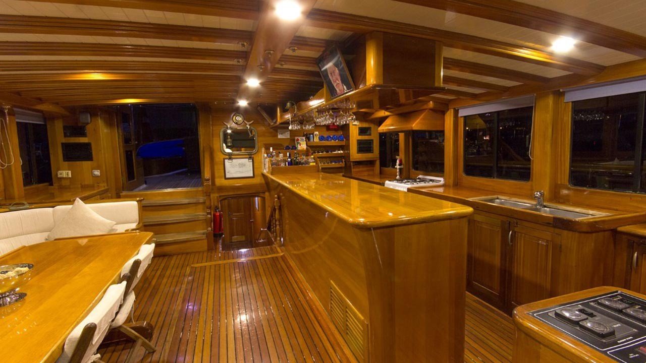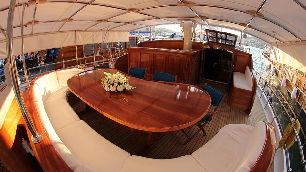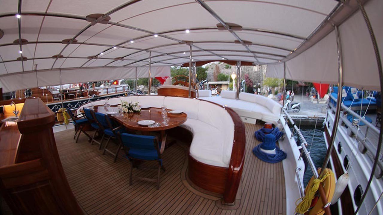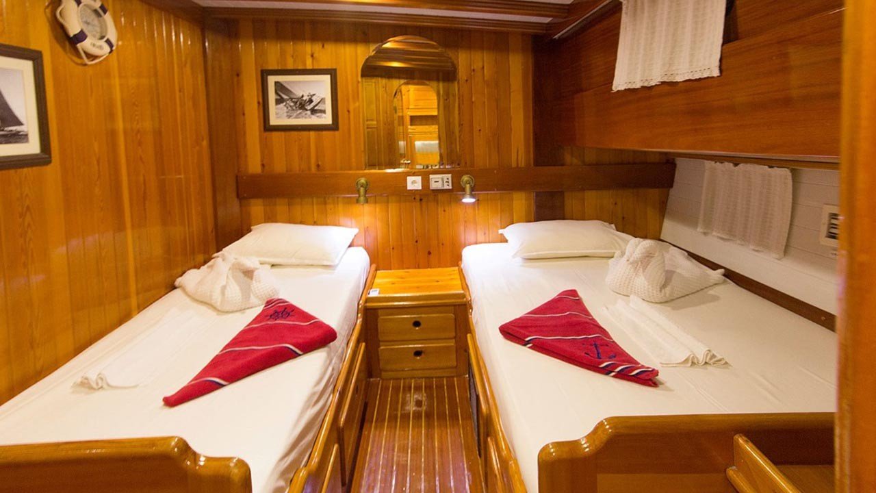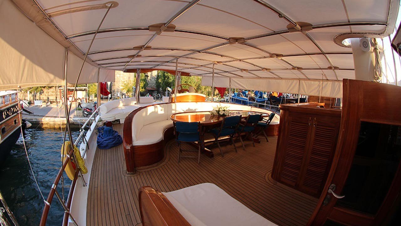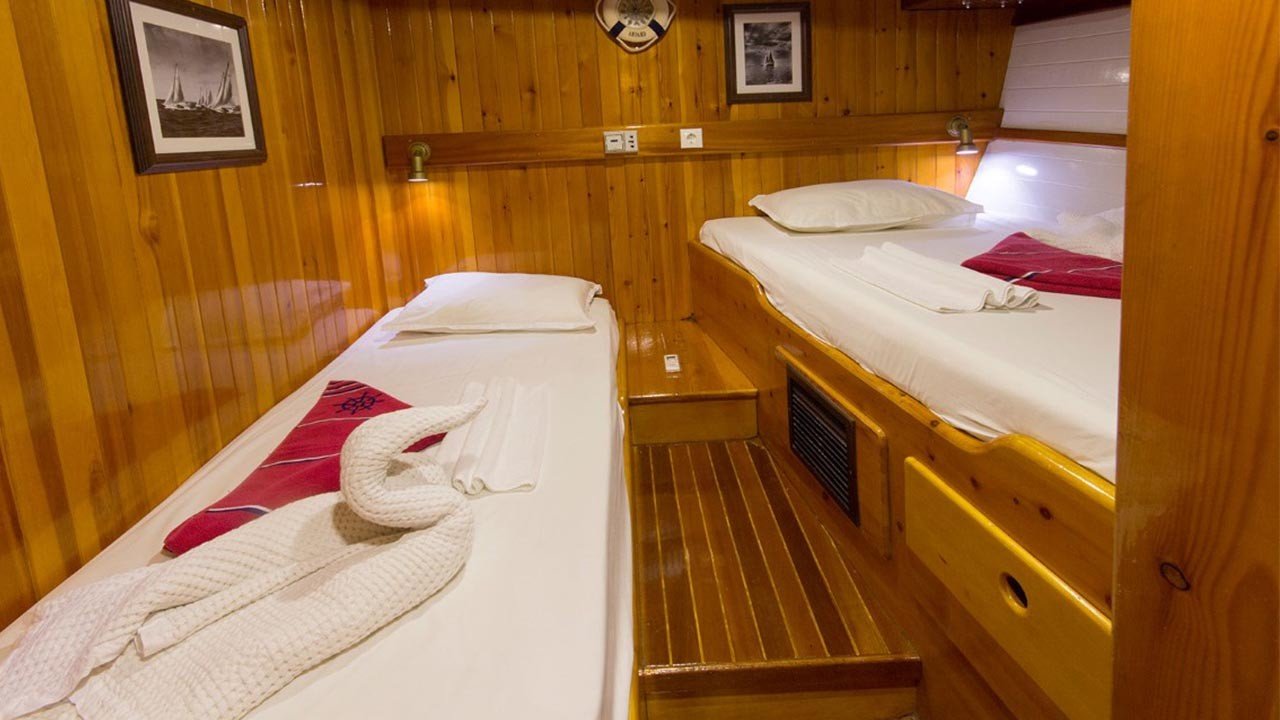 | El Gulet Cevri Hasan 5 es un gulet tradicional de 28,5 metros. Fue construido en el año 2000 y reacondicionado en 2012. La embarcación cuenta con seis cabinas, incluidas dos dobles, dos triples y dos twin, con una capacidad total de hasta 12 huéspedes. Cada cabina dispone de baño privado y unidades de aire acondicionado disponibles durante 12 horas al día. Su amplia cubierta ofrece áreas de comedor a la sombra, asientos acolchados y amplias zonas para tomar el sol. El interior del barco es acogedor, con salón, mesa de comedor y cocina totalmente equipada. En cuanto a deportes acuáticos, el Cevri Hasan 5 dispone de un tender Yamaha de 50 HP, esquís acuáticos, ringo, canoa, equipo de snorkel y material de pesca. La embarcación está impulsada por un motor Volvo de 400 HP y respaldada por generadores de 18 + 11 kVa, lo que le permite una velocidad de crucero de 11 nudos. El Cevri Hasan 5 es una opción ideal para familias o grupos que buscan una combinación de comodidad y entretenimiento en la costa turca. |