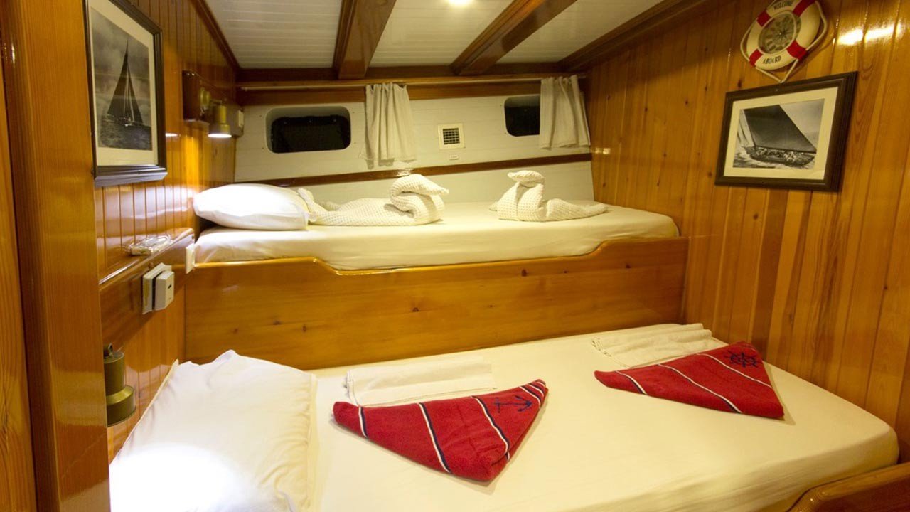 | Capacidad para hasta 12 invitados; 2 cabinas dobles, 2 twin, 2 triples, cabinas de ducha y baños en todas las cabinas, cabinas de tripulación separadas. |