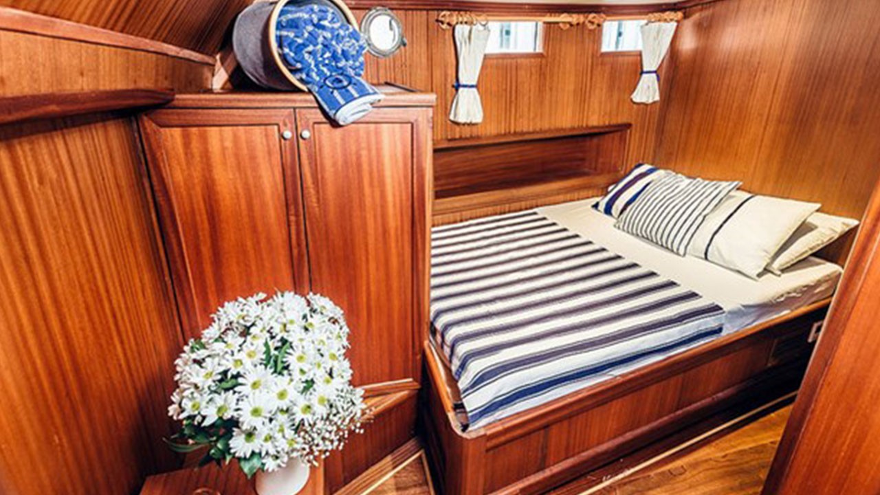 | El gulet de 24 metros, construido en 1996 y renovado en 2016, es un excelente ejemplo de nuestro compromiso con la calidad. Con siete camarotes, incluidos dos camarotes principales y cinco dobles, puede alojar hasta 14 huéspedes. Cada camarote está equipado con su propio baño privado, y el aire acondicionado está disponible durante ocho horas al día. La manga de 6,75 metros proporciona una amplia cubierta, con comedores a la sombra, asientos acolchados y zonas para tomar el sol. El salón interior está diseñado para ser acogedor e incluye un comedor y una cocina. Los deportes acuáticos incluyen una auxiliar de 25 HP, canoa, equipo de snorkel y equipo de pesca. El barco está propulsado por un motor Scania de 450 HP y un generador de 24 kVA, lo que le permite navegar a 10 nudos. El gulet Segmen es la opción ideal para familias o grupos que buscan una experiencia Blue Cruise asequible y cómoda. |