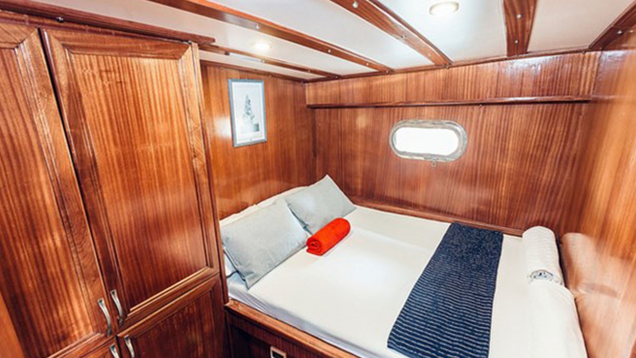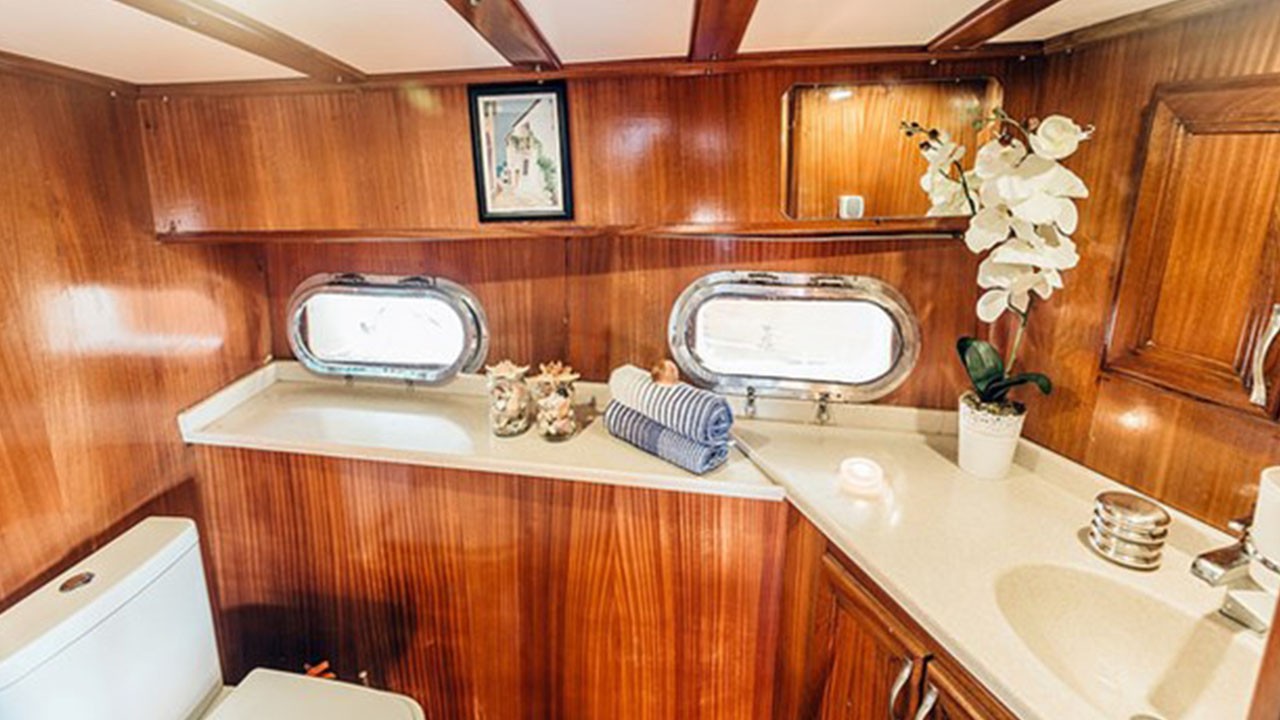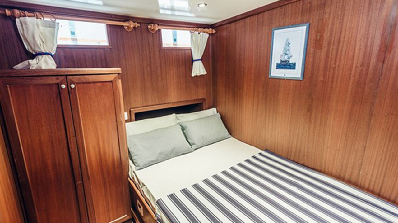| Capacidad para hasta 14 invitados; 2 cabinas principales, 5 cabinas dobles, cabinas de ducha y baños en todas las cabinas, cabinas de tripulación separadas. |