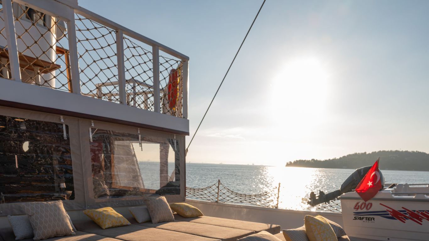 | Nuestra goleta privada de 8 camarotes está diseñada para ofrecer una experiencia inolvidable de viaje azul en Estambul y el mar de Mármara. Con un total de 8 cómodos camarotes, es una opción ideal para familias, grupos de amigos o eventos corporativos. Cada camarote cuenta con baño/WC privado, aire acondicionado y detalles modernos; el espacioso salón interior del yate, con sus cómodas zonas de descanso, proporciona una sensación hogareña en medio del mar. Las zonas de estar al aire libre prometen un gran disfrute: la cubierta de popa cuenta con una gran mesa de comedor y una zona de descanso, mientras que la cubierta de proa tiene cojines para tomar el sol y cómodos rincones de relajación. A lo largo del día, podrá nadar y refrescarse mientras disfruta de las vistas únicas de Estambul, y por las noches, podrá disfrutar de una cena bajo las luces del Bósforo y un cielo estrellado. Para los huéspedes interesados en los deportes acuáticos, se ofrecen a bordo actividades como paddle surf, piragüismo y snorkel. La experimentada y amable tripulación está a su servicio para satisfacer sus necesidades en cualquier momento; el desayuno al amanecer, los baños en las bahías durante el día y la elegante cena que se sirve por las noches hacen que este viaje sea inolvidable. Este servicio especial de alquiler de goletas con salida desde Estambul combina el confort moderno con la estética clásica de las goletas, lo que resulta muy atractivo para aquellos que buscan unas vacaciones inmersos en el mar. |