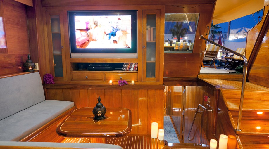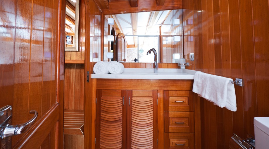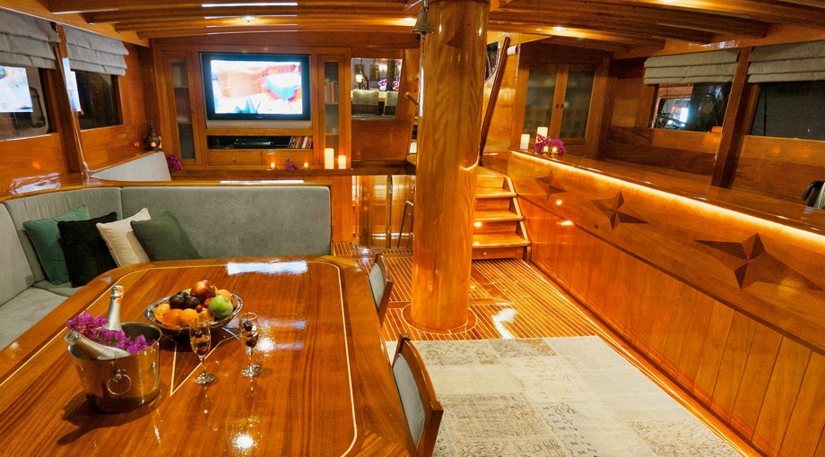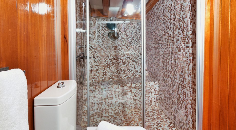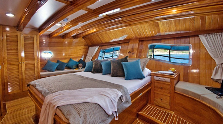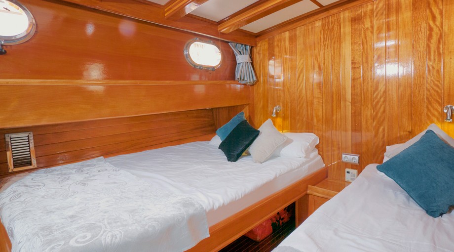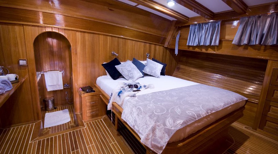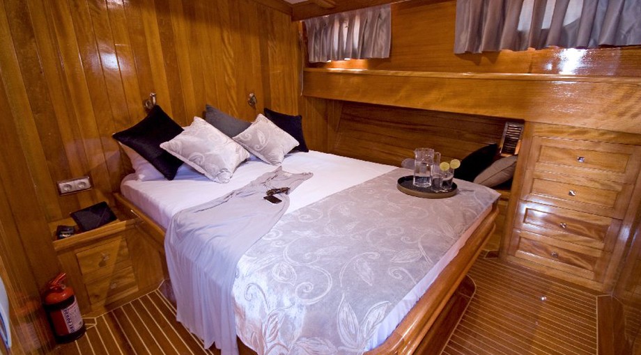 | Capacidad para hasta 17 invitados; 2 cabinas principales, 3 dobles, 1 triple, 2 cabinas twin, aire acondicionado, reproductor de TV/DVD/CD, cabina de ducha y baños tipo hogar en todas las cabinas, cabinas de tripulación separadas. |