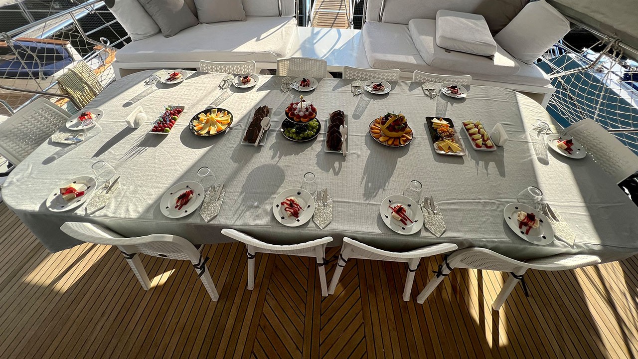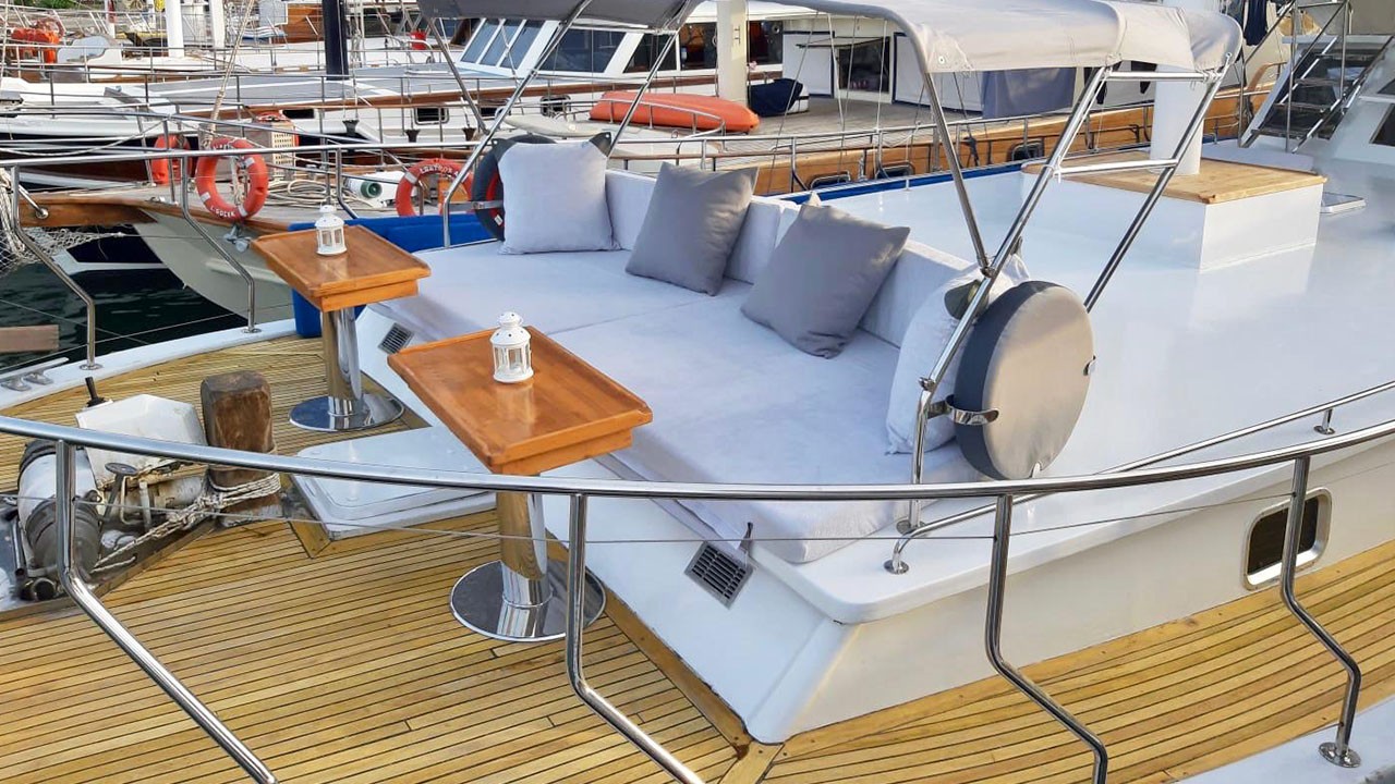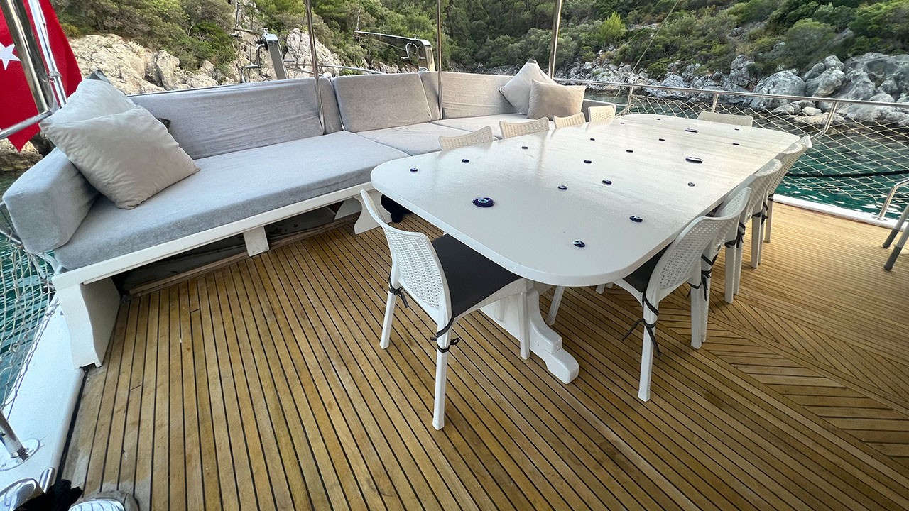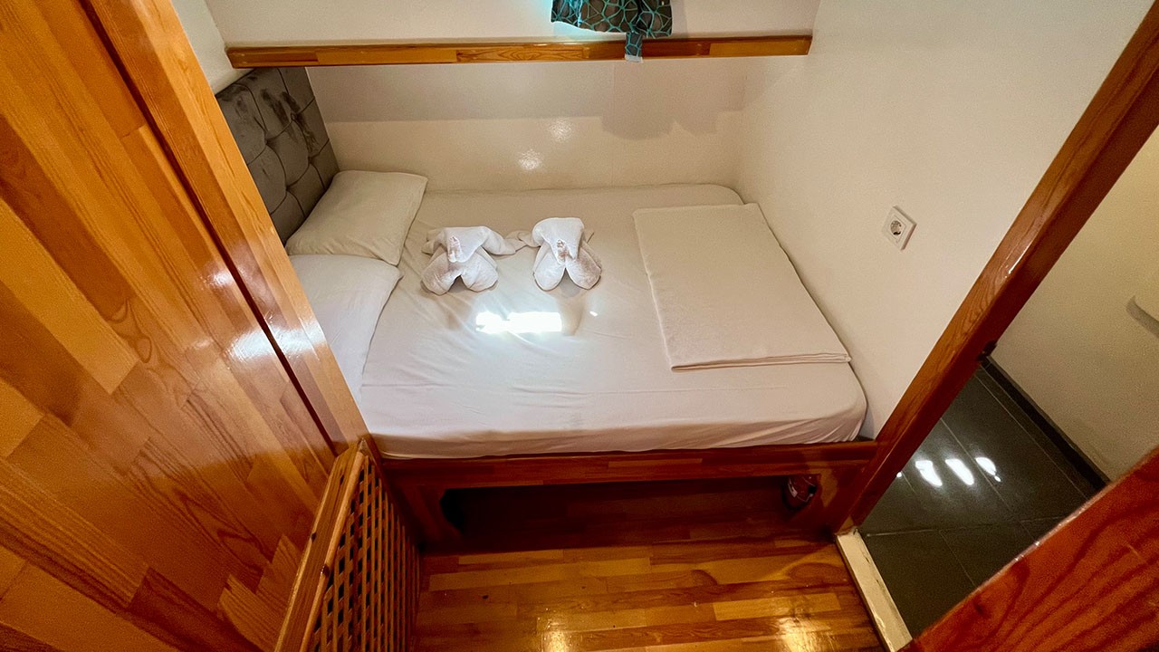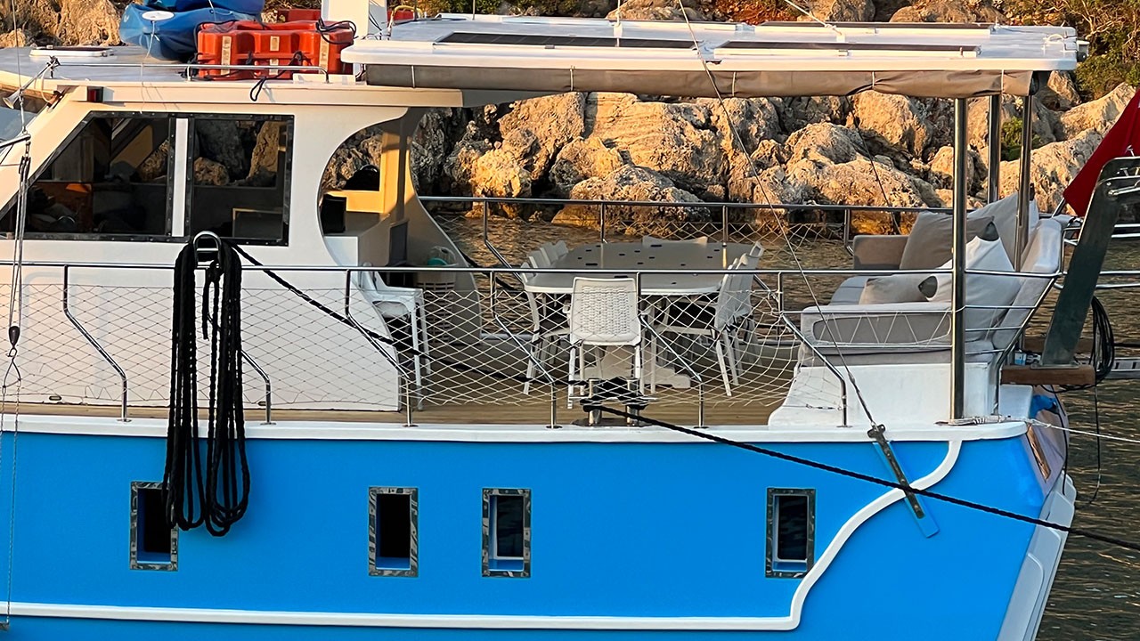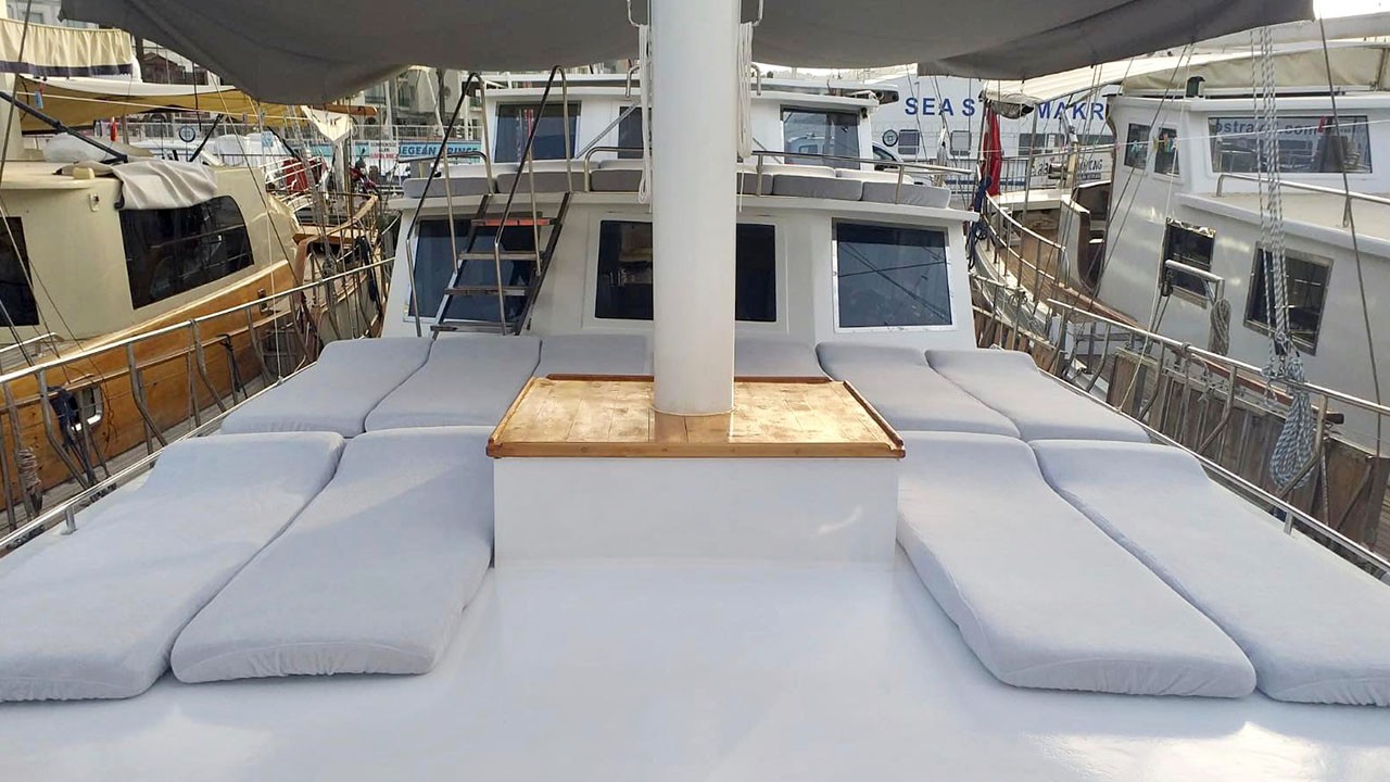 | El Gulet Simi es un gulet de 26 metros, construido en 2015 y renovado en 2022. Ofrece ocho camarotes dobles, con capacidad para dieciséis huéspedes. Cada camarote está equipado con aire acondicionado y baño privado, con uso de aire acondicionado disponible durante seis horas al día. La manga de 6,5 metros proporciona un amplio espacio en las cubiertas, con zonas para comer, salones y áreas para tomar el sol, todas ellas situadas en espacios sombreados. El salón está diseñado para ser cómodo e incluye un comedor y una cocina. El equipo de deportes acuáticos incluye una auxiliar de 30 HP, tablas de paddle surf, canoas, equipo de snorkel y equipo de pesca. La embarcación está impulsada por un motor MAN de 500 HP y un generador de 22,5 kVA, lo que le permite navegar a una velocidad de 9 nudos. Simi es perfectamente adecuada para grupos medianos que buscan comodidad y una buena relación calidad-precio. |