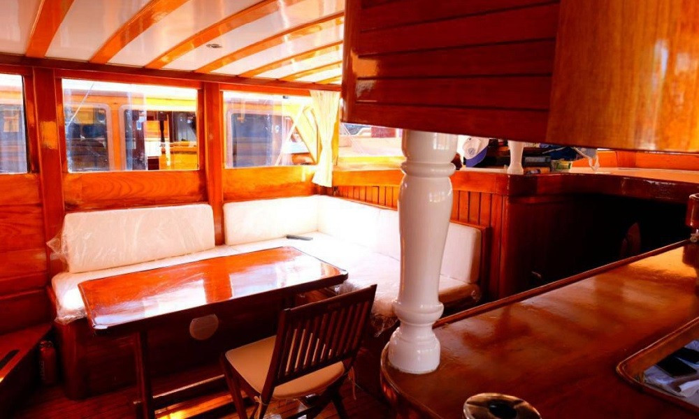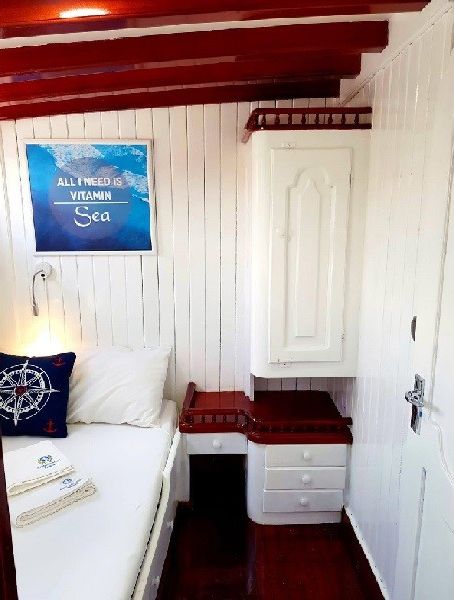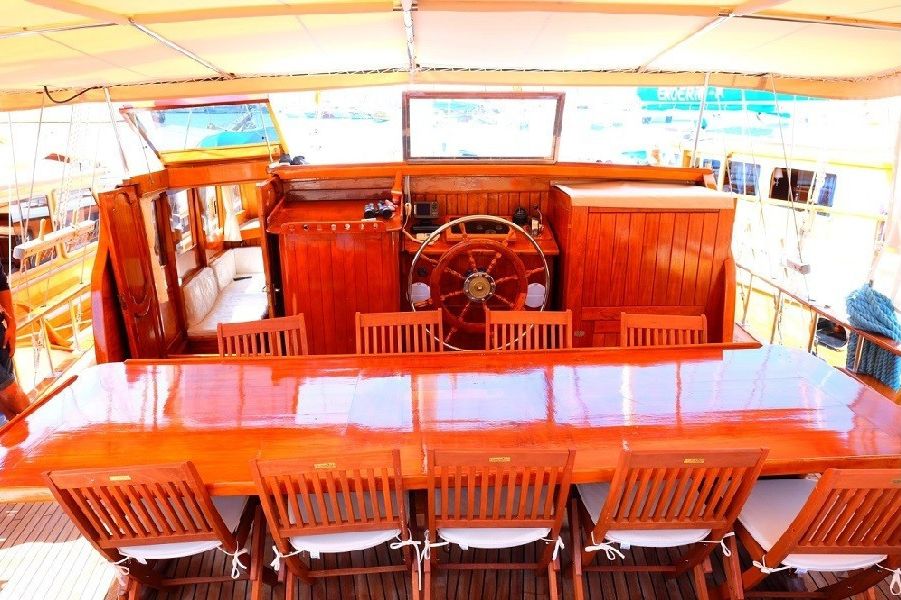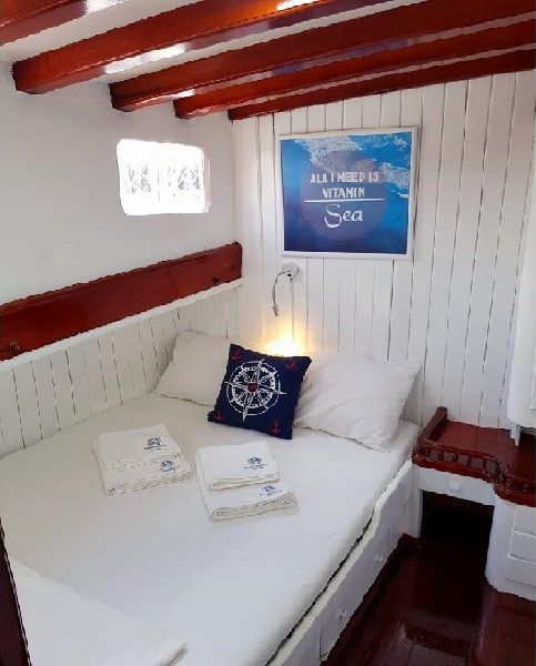 | El Gulet Techne es un gulet de 24 metros, construido en 1996 y renovado en 2022. La embarcación dispone de ocho camarotes dobles, con capacidad para dieciséis huéspedes. Cada camarote está equipado con aire acondicionado, disponible durante cuatro horas al día, y baños privados. El diseño de la cubierta incluye comedores y salones sombreados, así como amplias áreas para tomar el sol. El salón es acogedor, con mesa de comedor y cocina. Para deportes acuáticos, Techne ofrece una auxiliar de 25 HP, tabla de paddle surf, banana, canoa, equipo de snorkel y equipo de pesca. La embarcación está propulsada por un motor Scania de 360 HP y un generador de 17 kVa, lo que le permite navegar a 8 nudos. Para unas vacaciones relajantes en gulet, Techne es una excelente elección. |