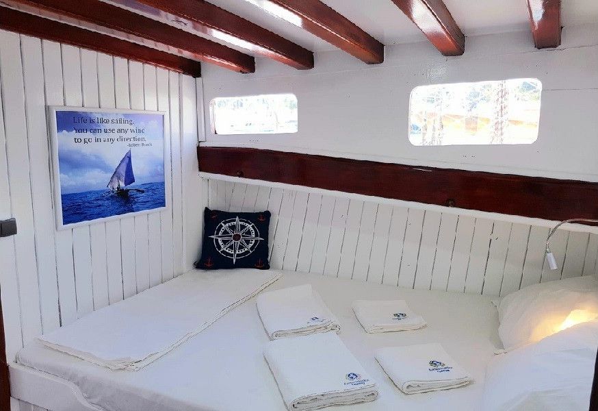 | Capacidad para hasta 16 invitados; 8 cabinas dobles, cabinas de ducha y baños en todas las cabinas, cabinas de tripulación separadas. |