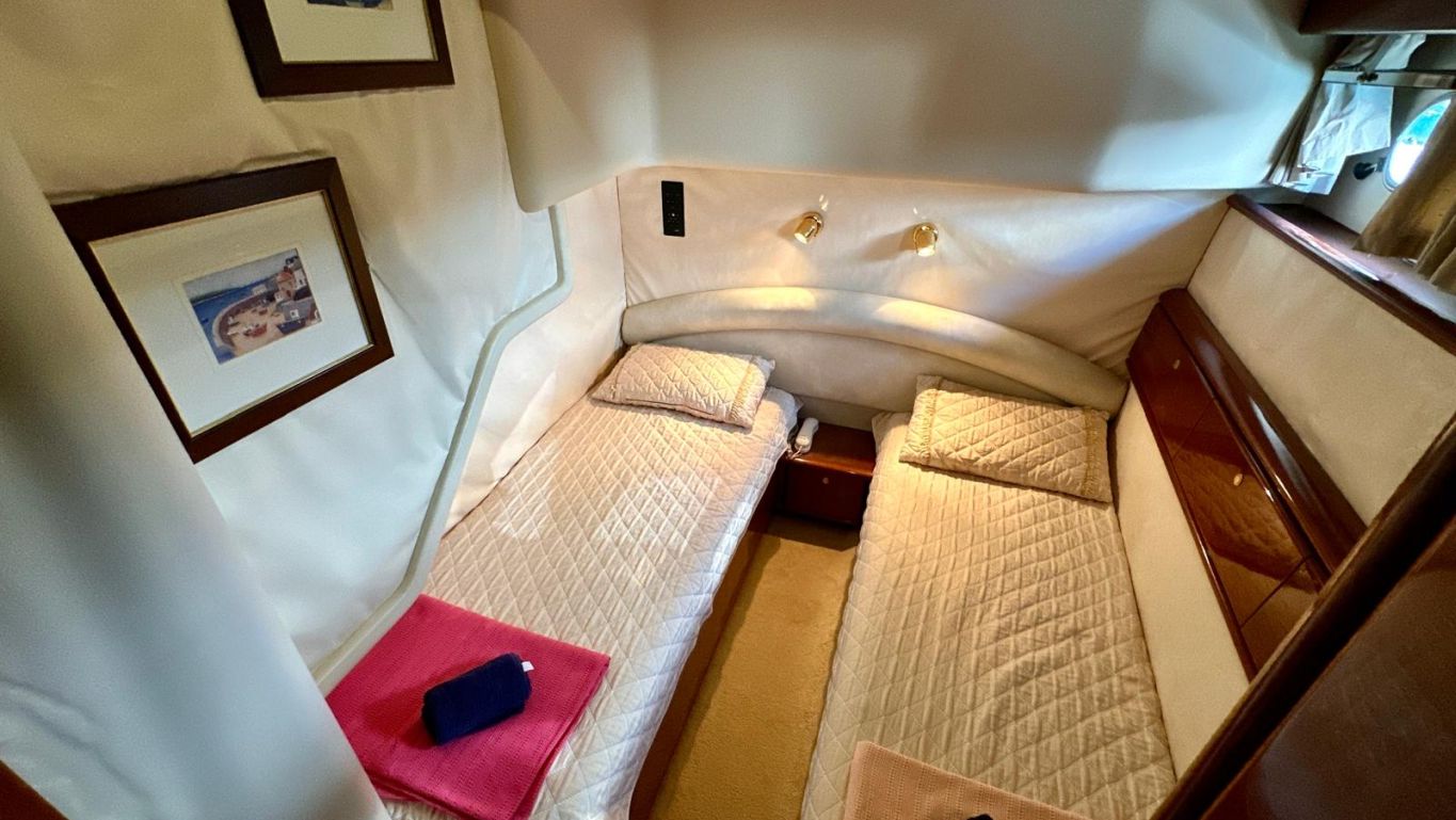 | Capacidad para hasta 4 huéspedes; 3 camarotes. Todos los camarotes están equipados con baño, inodoro, aire acondicionado y camarotes separados para la tripulación. |