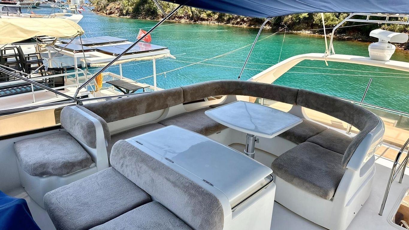 | Jokerboat, sistema de música y pantalla LCD en todos los camarotes y el salón, equipo de snorkel y pesca, radio VHF, GPS, equipo de seguridad, equipo de navegación, persianas eléctricas, refrigeradores, cafetera, internet Wi-Fi. |