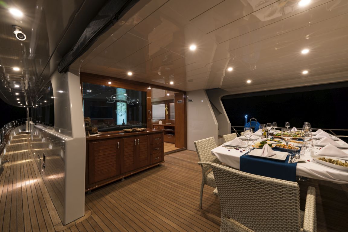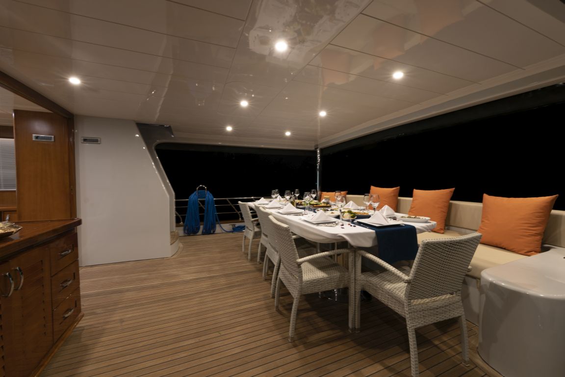 | Sistema de música, altavoces de cubierta, radar, GPS, radio VHF, internet, plotter, piloto automático, indicadores de viento, profundidad y velocidad, equipos de seguridad, AIS, deportes acuáticos opcionales, equipo de snorkel, equipo básico de pesca |